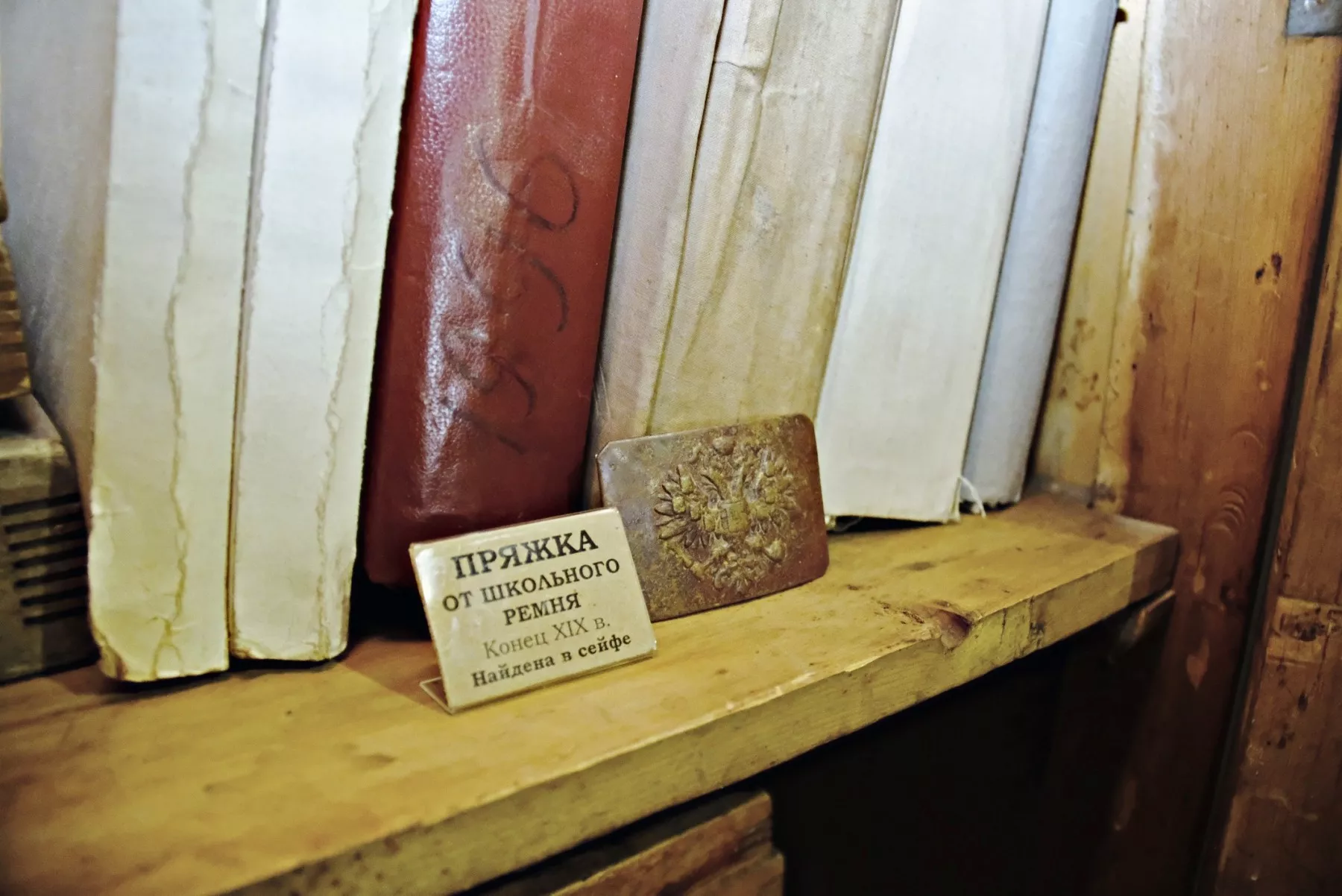 При расчистке сейфа на дне уникального хранилища нас все же ждал сюрприз: старинная медно-латунная пряжка с двуглавым орлом ХIХ века, от школьного ремня. Одно время здесь, в архиерейском доме, в нескольких залах, находились учебные классы Бийского миссионерского катехизаторского училища. Затем уже было построено большое Т- образное здание, которое мы, бийчане, знаем как гарнизонный дом офицеров. Сегодня там занимаются учащиеся Бийской православной школы во имя cвятого праведного Иоанна Кронштадтского.
