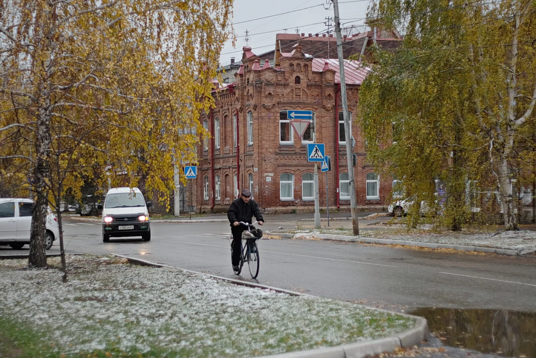 Теплая осень 2018 года заканчивается – Бийск присыпало первым снежком.