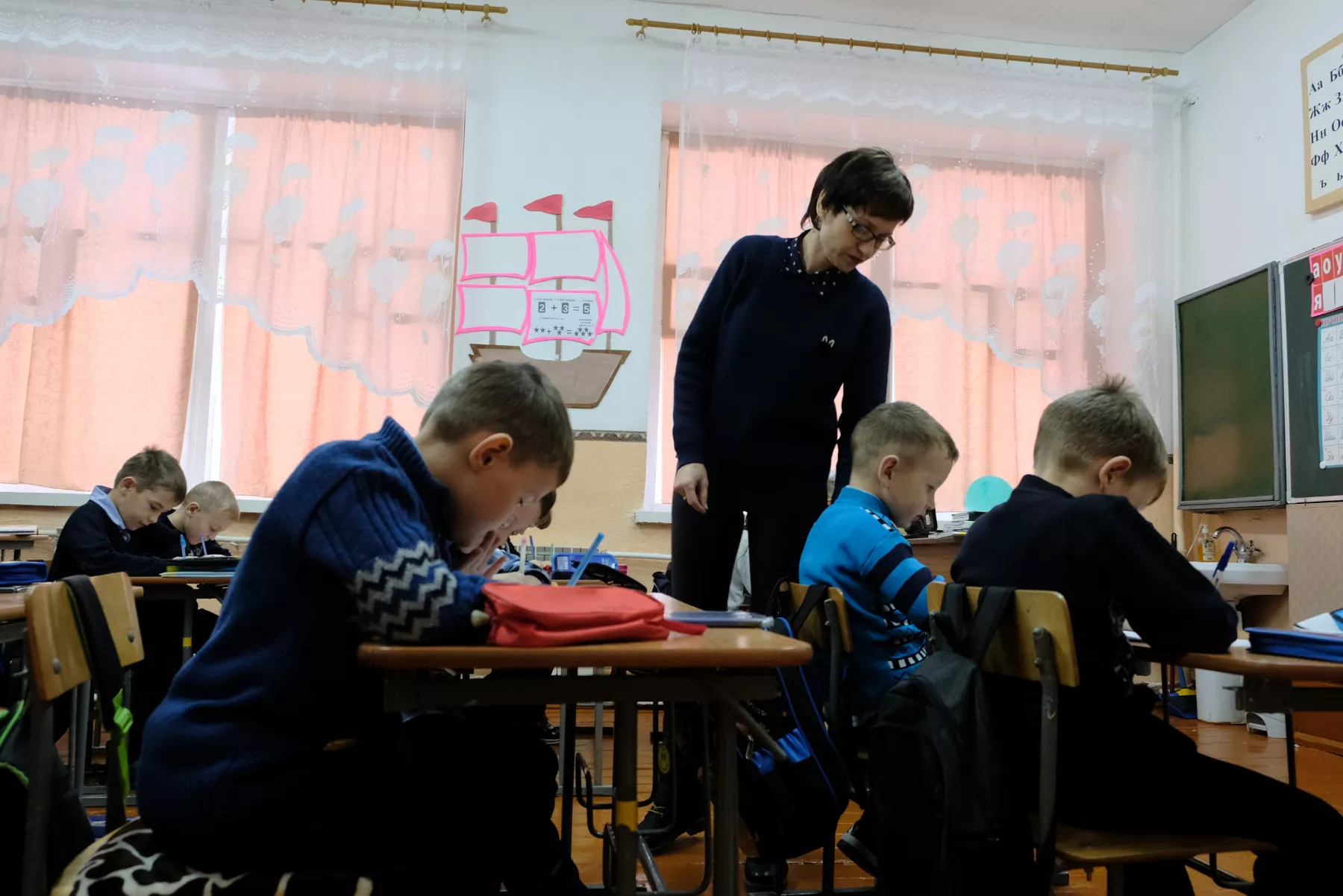 – Я больше скажу – в 11-ом классе дети тоже сидят за маленькими партами. Когда бываю на собрании у сына, у меня ноги туда не влезают. А мальчики в таком возрасте под два метра вырастают... Это только в коррекционной школе все по СанПиНу. В каждом классе. И по мере роста детей мы наращиваем парты. В начале года рост измеряем.