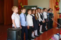 Будущих выпускников школа № 12 трогательно поздравили ученики первых классов. Ребята подготовили про своих любимых выпускников сатирические стихи. Директор школы Ресслер Марина Сергеевна выступила с трогательной речью - поблагодарила детей за выдержку и положительные эмоции, родителей за воспитание своих детей.