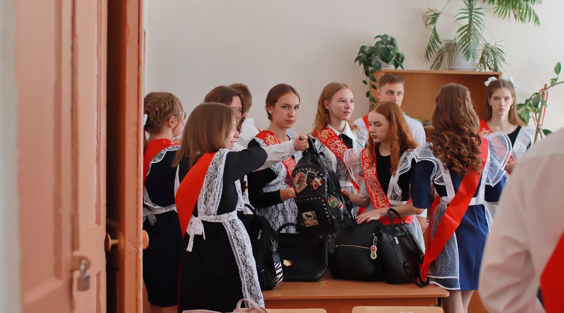В одних школах последний звонок проходил в обычном формате – белые фартуки и рубашки, поздравления и напутствия от учителей и родителей.