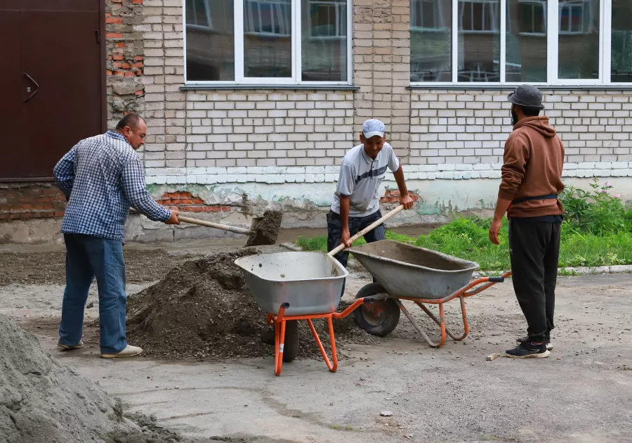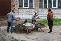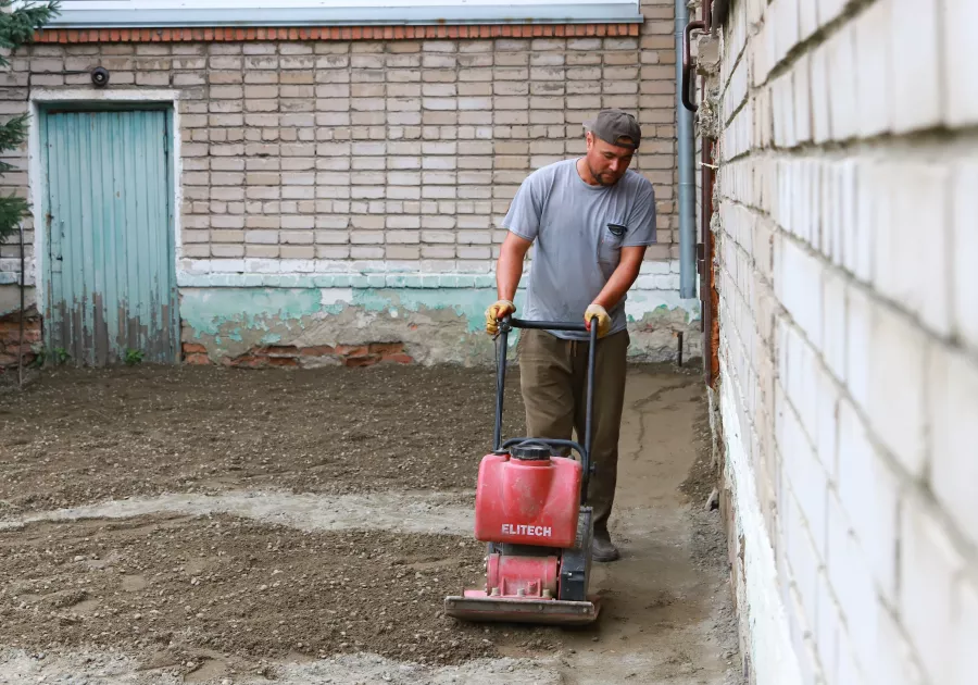 - Сейчас ведутся земляные работы: удаление и демонтаж старых крылец, асфальта и отмостки, которая уже вросла в землю. Затем будем уплотнять грунт и подготавливать его под бетонирование – сделаем «подушку». На данный момент одни рабочие делают крыльца, другие – отмостки, - рассказал Петр Кропоткин, инженер хозяйственной группы управления образования администрации г. Бийска.