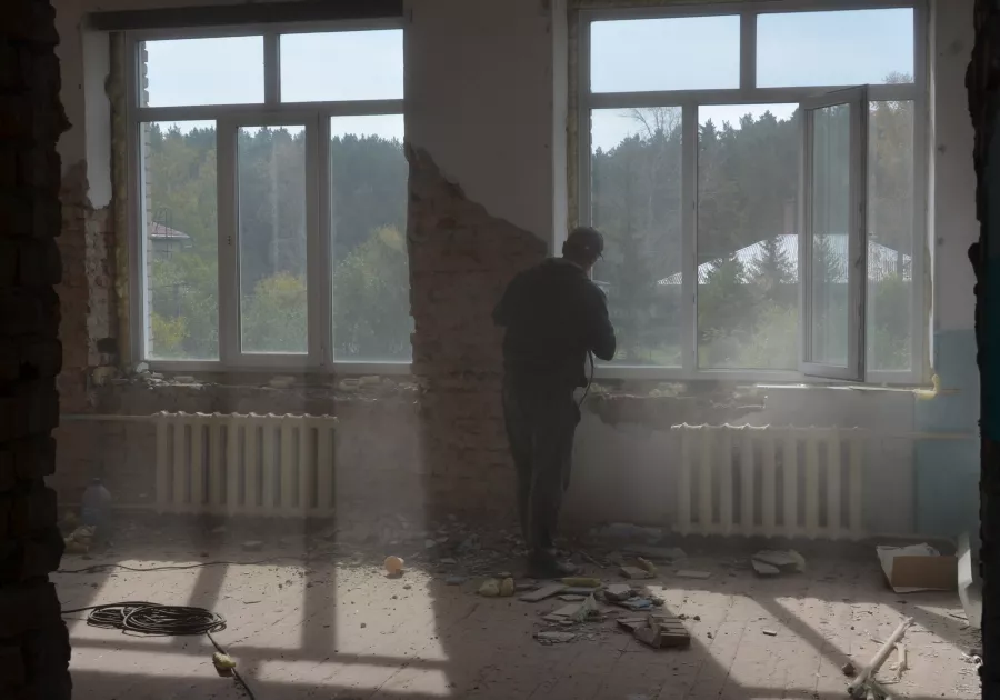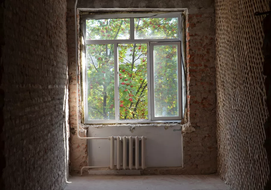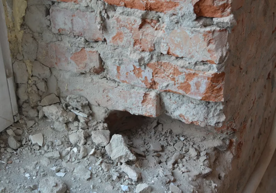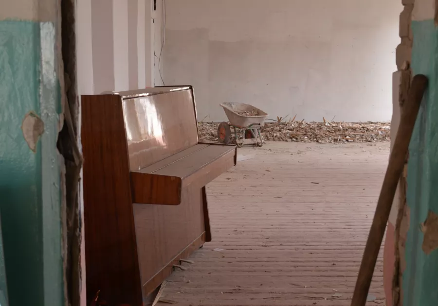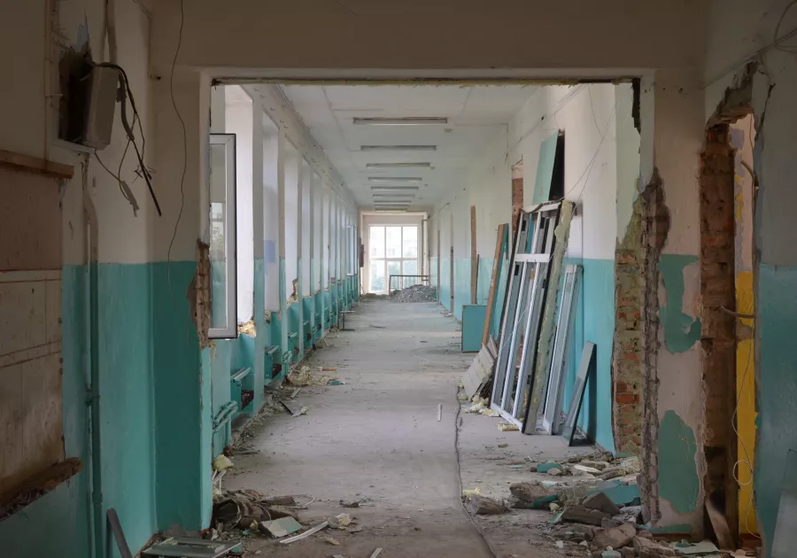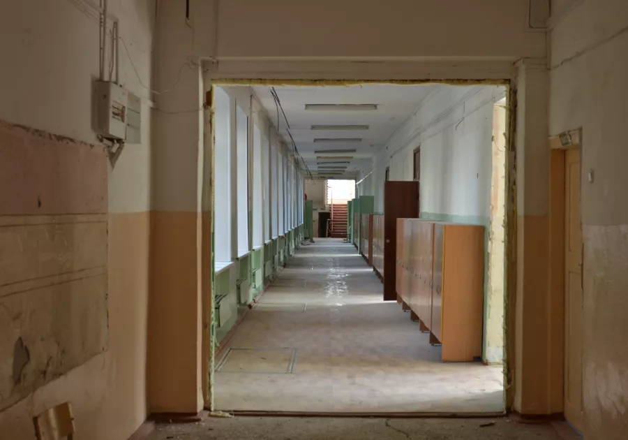 На данном этапе в школе уже выполнен демонтаж штукатурки. На следующем предполагается замена труб, ближе к зиме – демонтаж кровли, ее покрытие и замена некоторых стропильных систем.