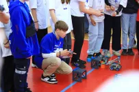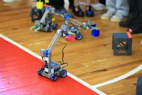 Однако на этом соревнования не закончились. Участников ждало финальное задание. Каждая команда должна была показать виртуозное управление роботами. Так, в спортивном зале школы для этого организовали специальную трассу, поделенную на три отрезка. На первом поле участникам предстояло захватить знамя, на втором – пройти полосу препятствий, а на последнем – пройти эстафеты. Члены команды сменяли друг друга в управлении роботом.