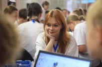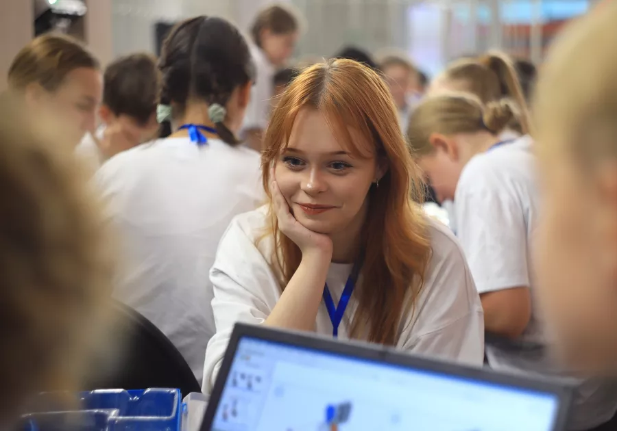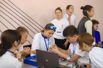 В это время участники соревнований сели за столы, включили компьютеры и приступили к сборке своих конструкторов.