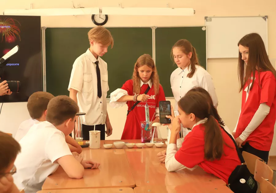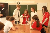 После торжественной части ребята разошлись по разным локациям. Болельщики отправились на экскурсию по кванториуму, где ученики школы № 1 продемонстрировали результаты своей работы за прошедший год. Гости научились создавать светящуюся жидкость, посмотрели на возможности 3D-принтера, познакомились с физическими явлениями с помощью магического шара и попробовали управлять роботами.