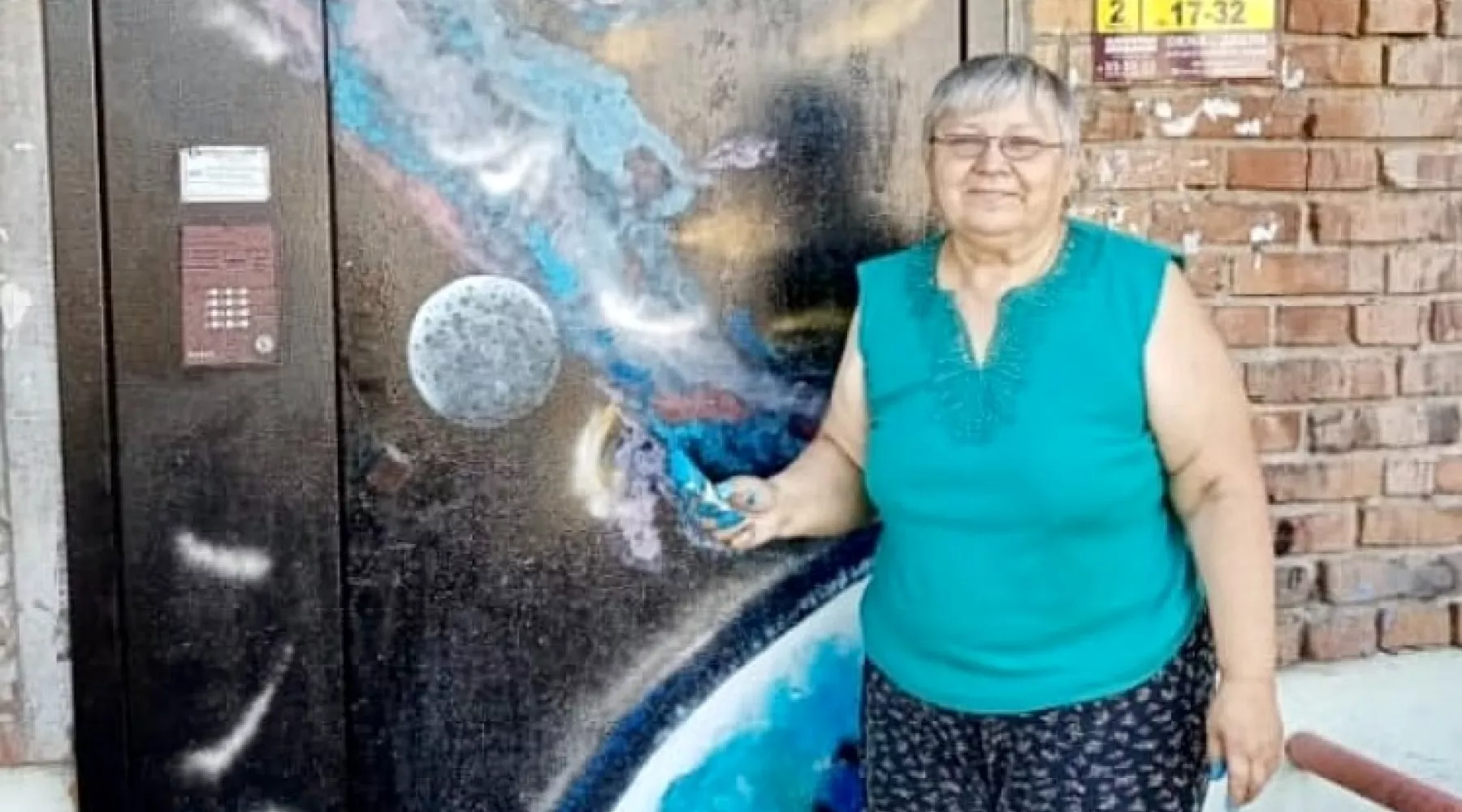 Она взяла краски и кисти, и расписала железную дверь звездами и планетами. Причем, по собственному желанию и за свой счет. Подобные инициативы наши горожане, чаще всего, встречают с позитивом.