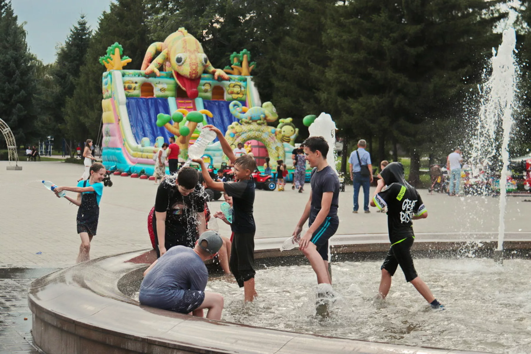 Обливались водой в этот раз дети только локально во дворах и на площадках с фонтанами