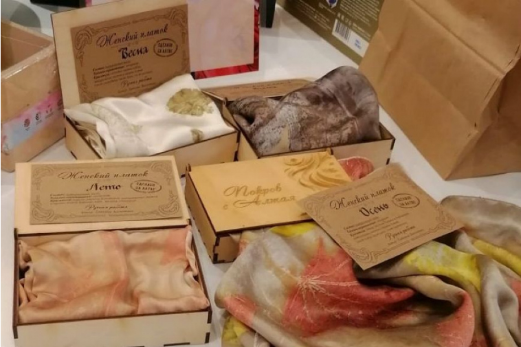 Кроме того, 1 место в номинации «Сувенир региона» получила серия женских платков «Покров с Алтая», ансамбля «Времена года» Татьяны Багнетовой, представленная галереей «АлтайТалантБийск».