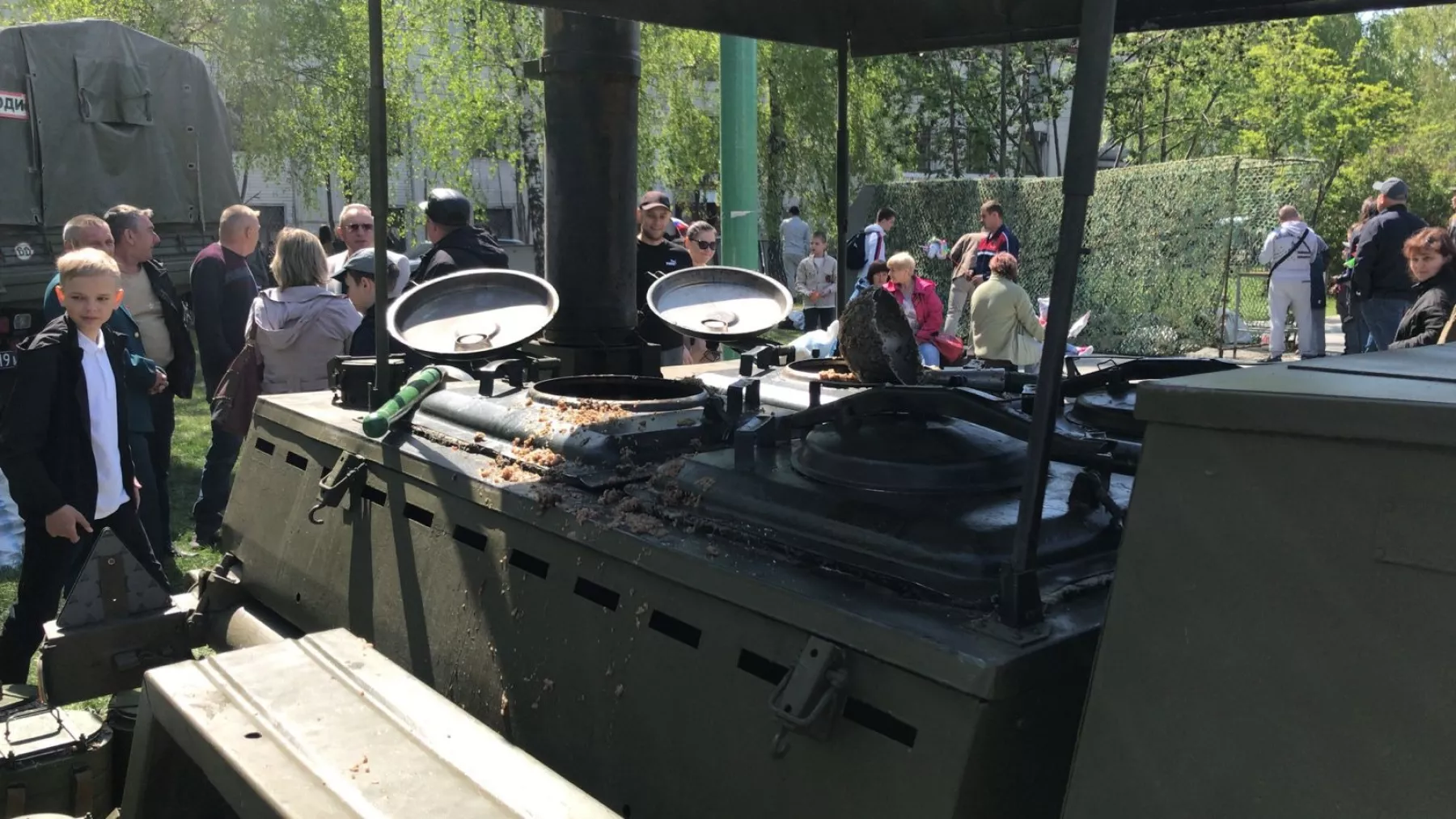 Кроме того, организаторы подготовили и солдатскую кашу и чай. Их раздавали бесплатно. Правда, тем, кто досмотрел парад и отправился подкрепиться, каши уже не хватило.