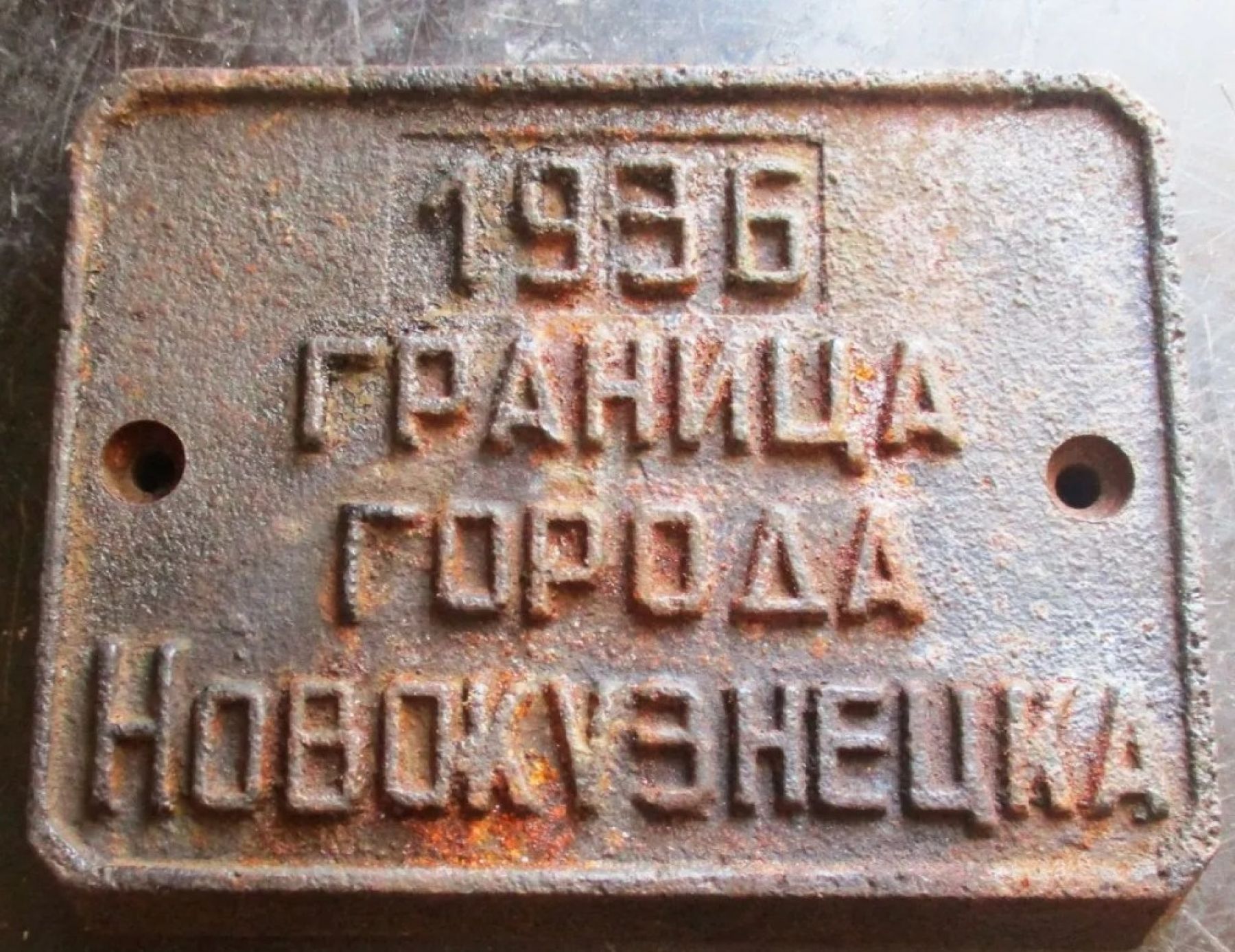 Покупателям предлагают чугунную табличку с межевого пограничного столба. Табличка обозначала границу города Новокузнецк. В объявлении указано, что табличка 1936 года.