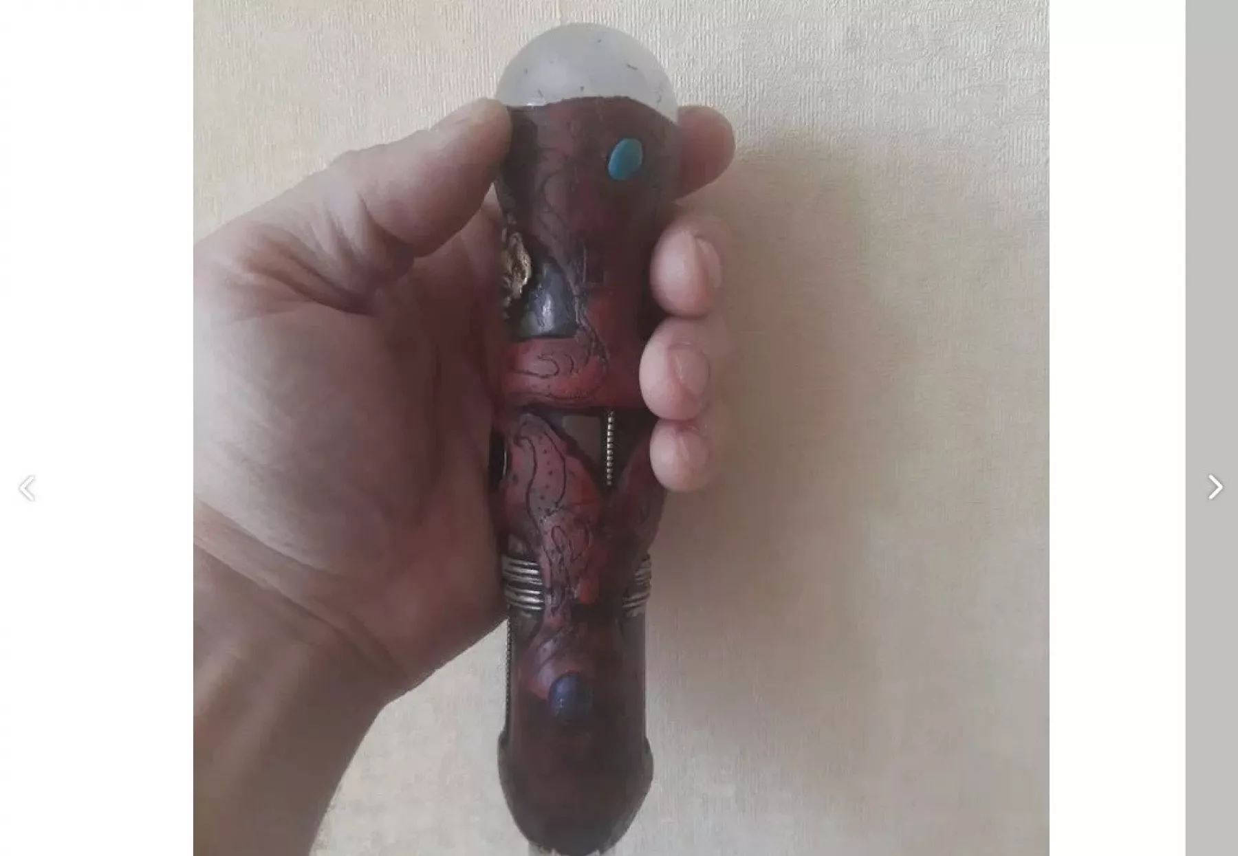 "Tibetan Healing stick или тибетский лечебный жезл. Гармонизирует чакровую систему человека.Изготовлен тибецкими монахами у Далай-Ламы, - пишет продавец. - Полностью из натуральных камней.Уникальный, ручной работы, в единственном экземпляре, применяется в сочетании с классическим массажем, для открывания и закрытия точек".