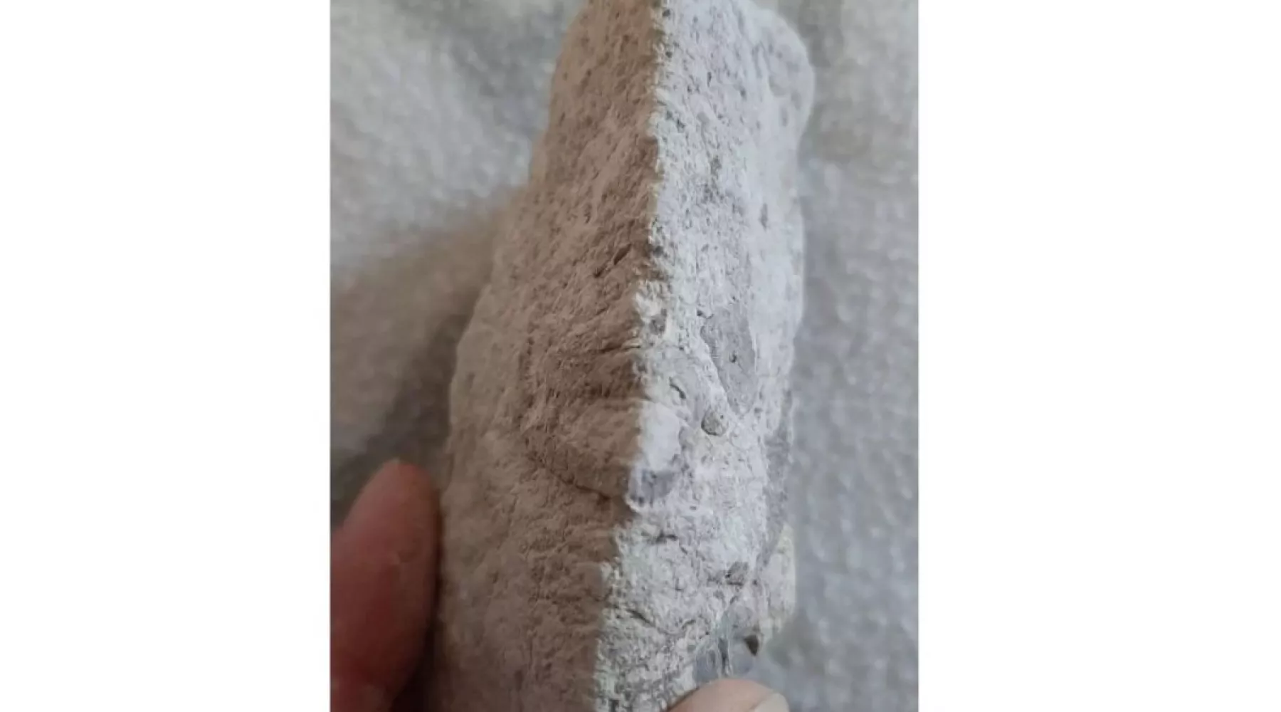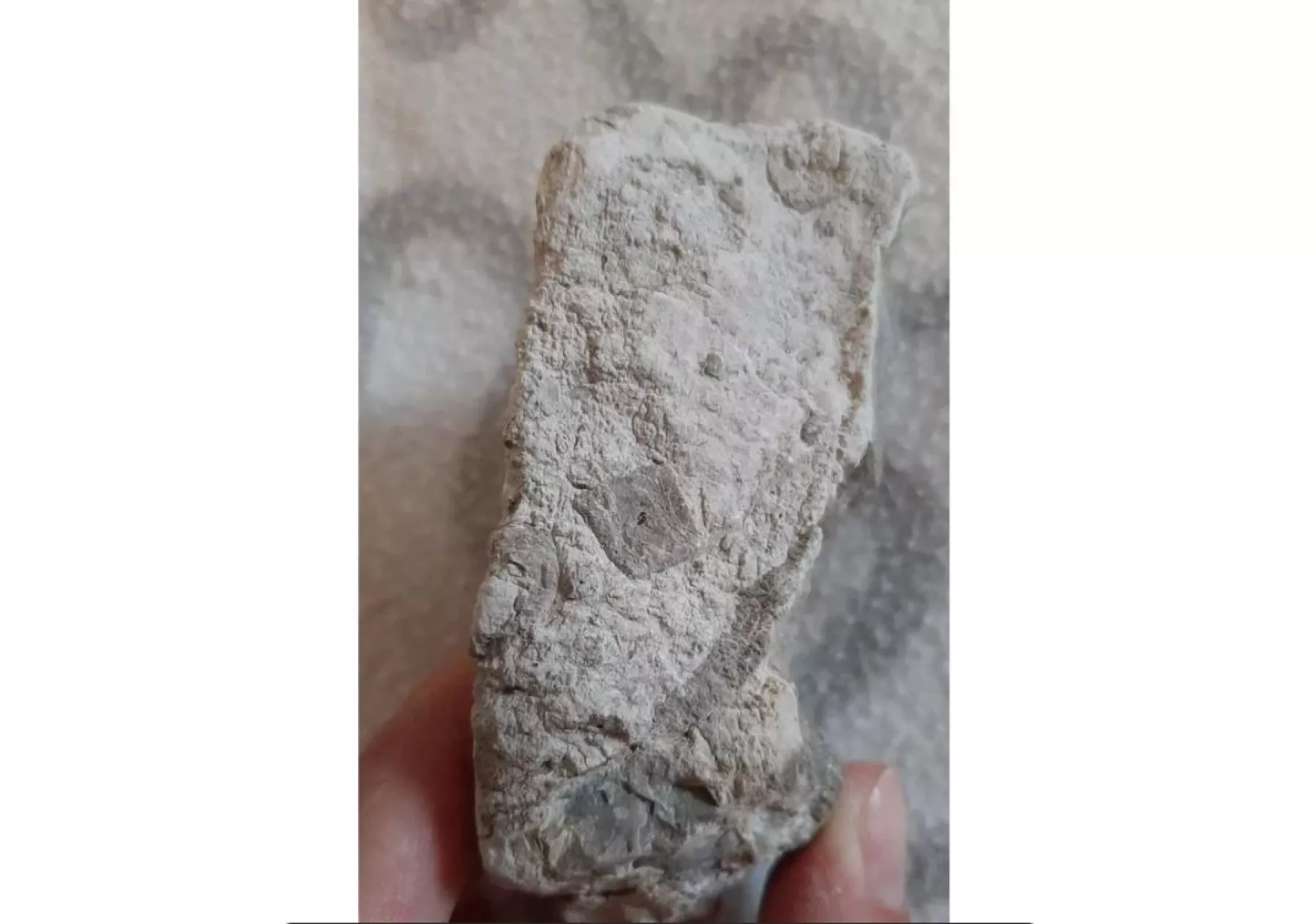 "Осколок известняка из Горного Алтая со следами скелетов морских лилий, обитающих в древнем море миллионы лет назад".