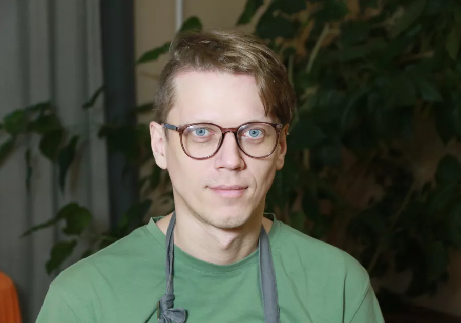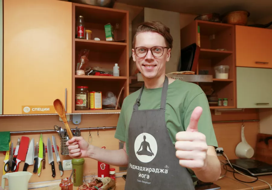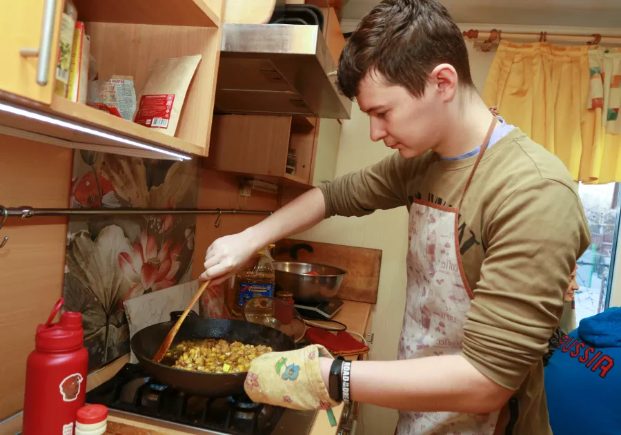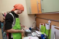 А вот Константин Скуратов попал в компанию волонтеров по приглашению знакомой. Молодой человек рассказывает, что готовить научился уже по ходу. По его словам, эта деятельность полезна еще и с точки зрения приобретения новых навыков.