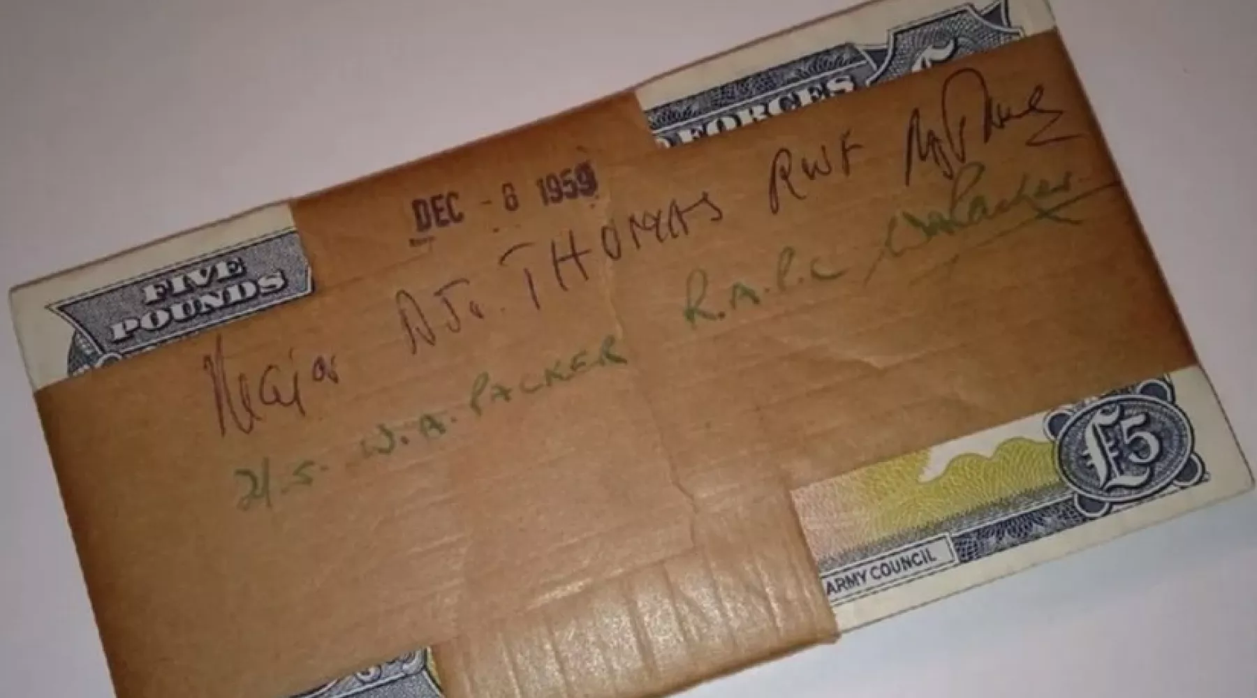 На бумажке, которая запечатывает купюры, даже не обладая знанием языка, можно прочитать имя некого Томаса, увидеть его роспись. Следующая строчка написана другим почерком, и там стоят инициалы и подпись другого человека, возможно того, кому предназначалась эта пачка денег. Почему она так и не была потрачена, теперь уже останется загадкой.
