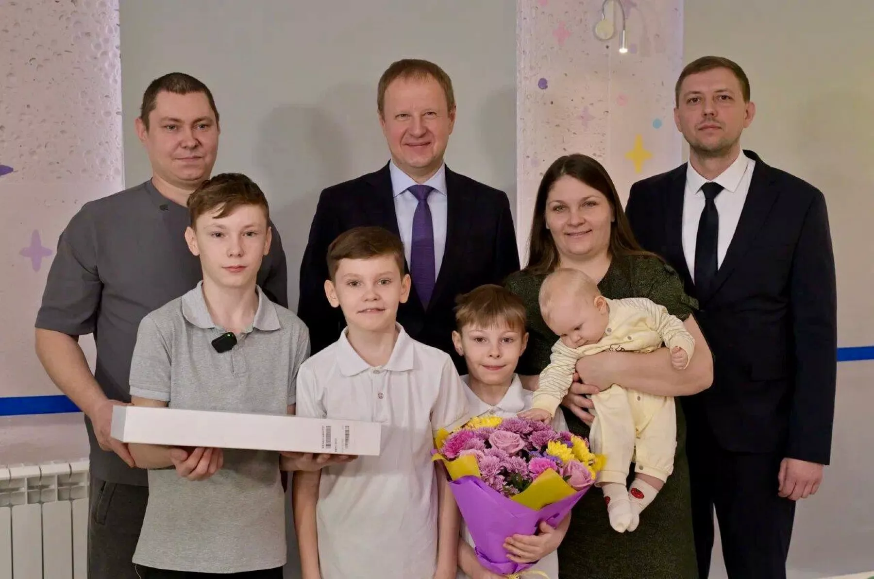 Глава государства поручил губернатору края выполнить эту просьбу. Совместно с мэром города Виктором Щигревым они встретились с многодетной семьей и передали мальчику компьютер.