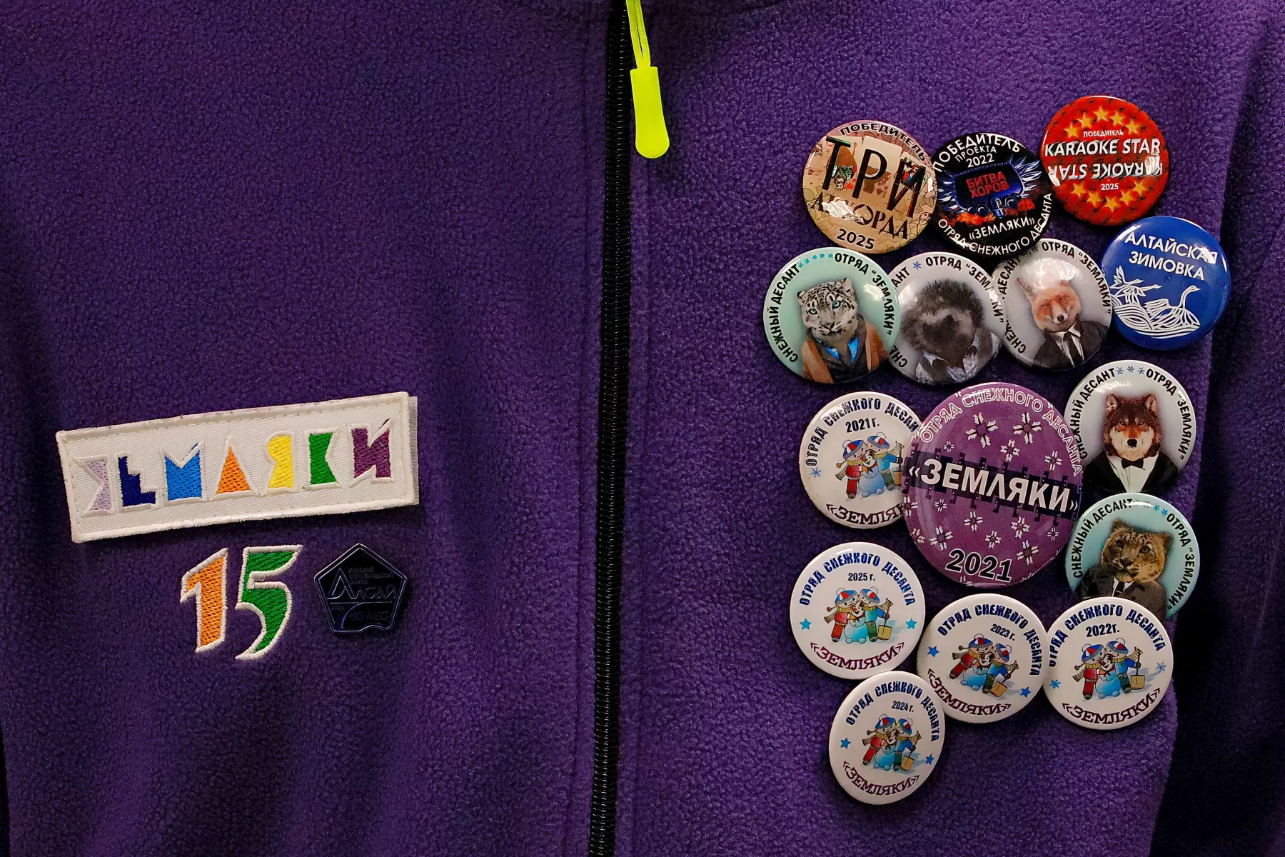 Если присмотреться к форме бойцов, можно заметить нагрудные значки. Правда у одних ребят их больше, у других меньше. Так по их количеству можно определить, сколько поездок в десант было у бойца. Например, у Никиты пять значков. Первый год в он был в отряде ежом, затем его звание повышалось: он становился лисом, волком, барсом и наконец снежным барсом. Получается командир Земляков уже бывалый старичок в отряде. На следующий год в десант он поедет уже мамонтом - самое старшее звание.