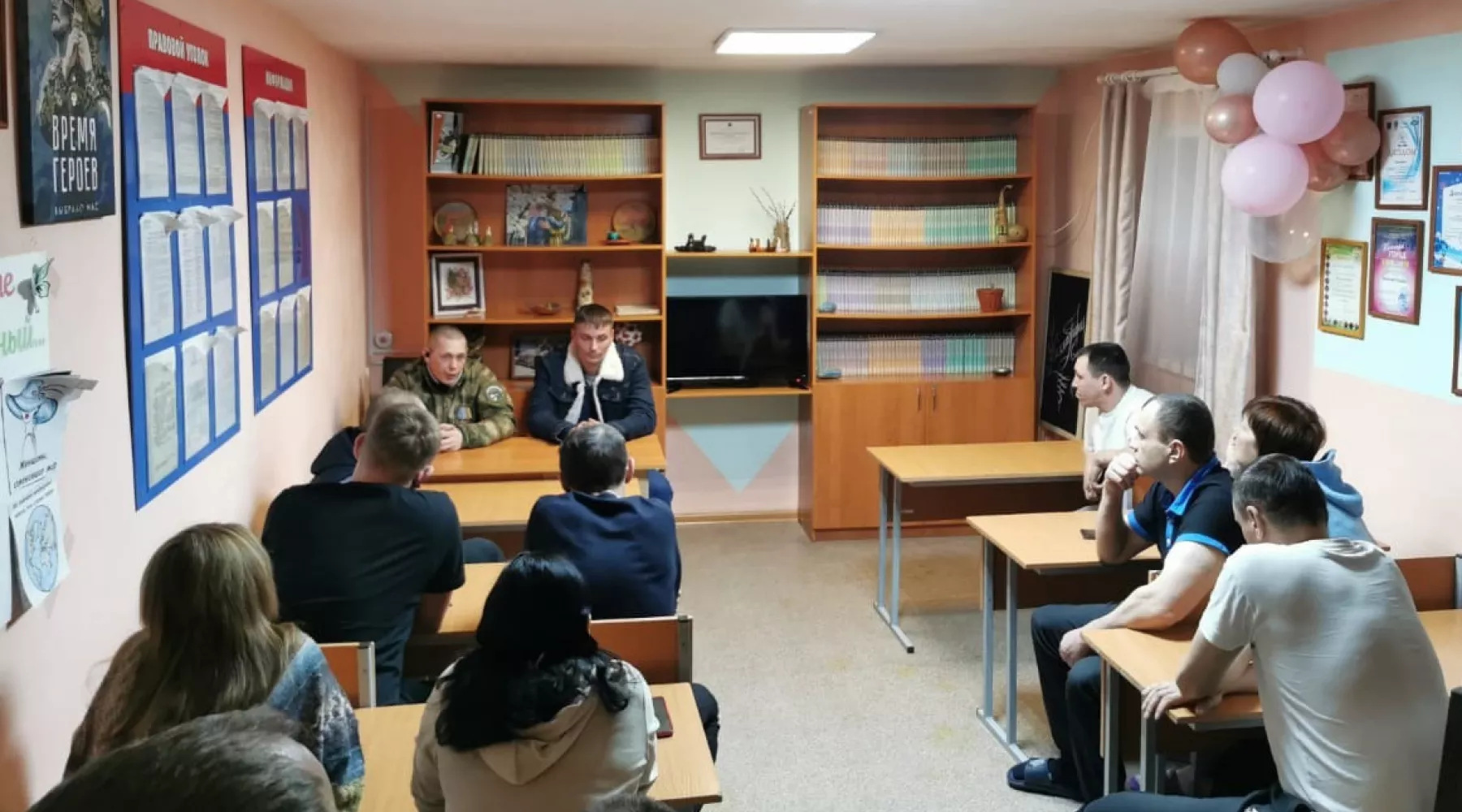 На встречу приехали бывшие осужденные, которые сейчас участвуют в СВО. Они поделились своими историями и опытом, рассказали о боевых товарищах и подробно ответили на вопросы присутствующих.