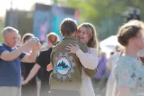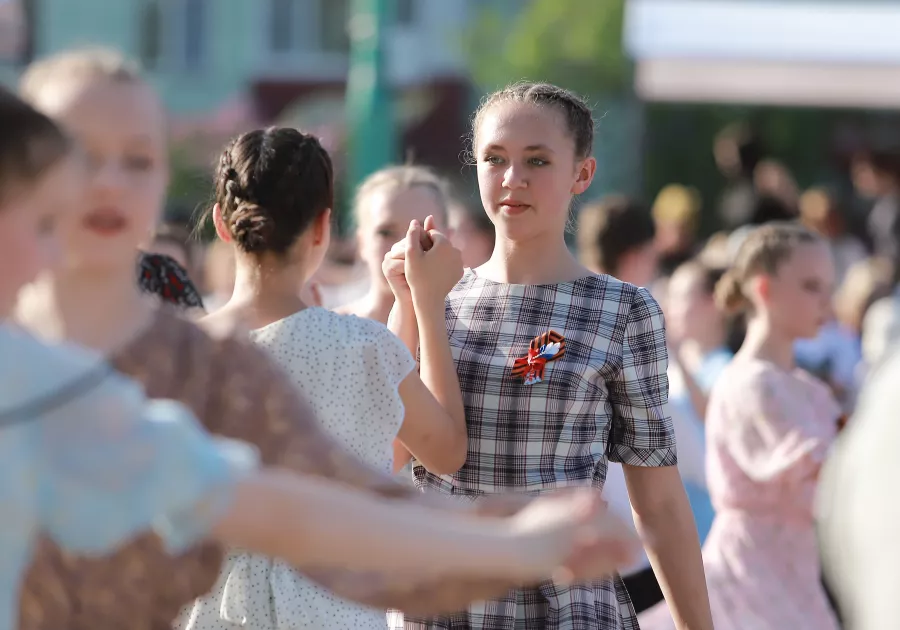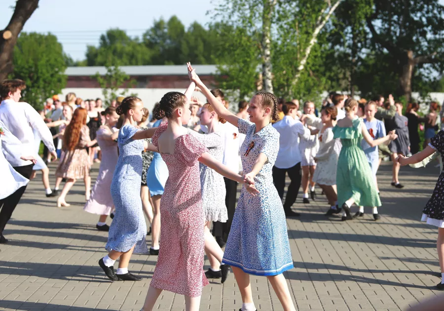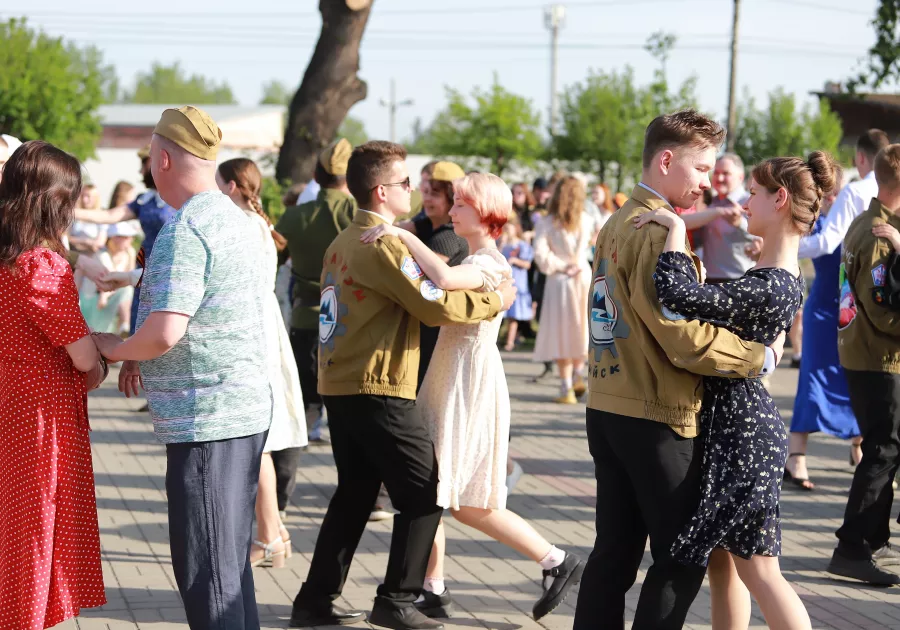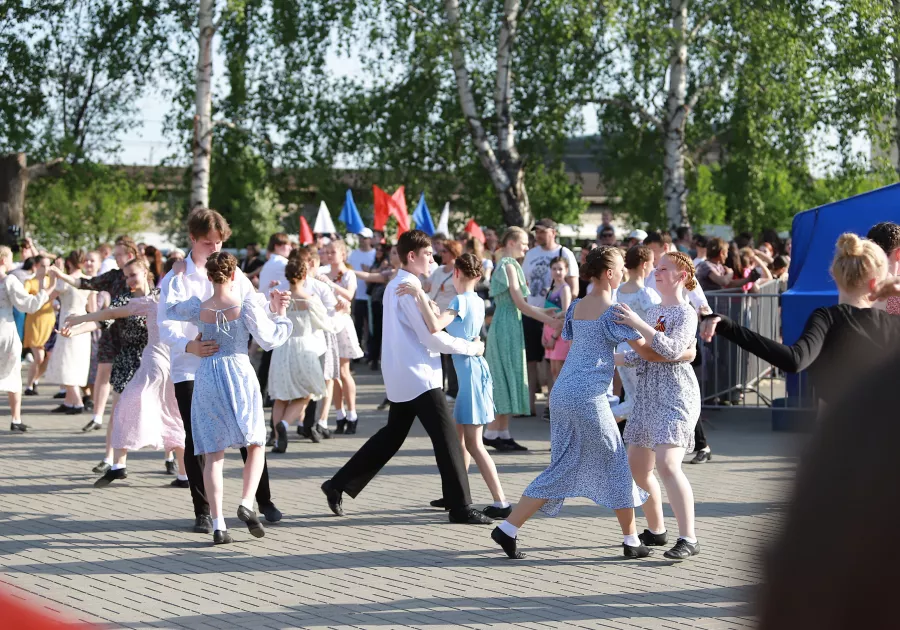 Заиграла музыка. На сцене появились пары юных бийчан, и все внимание устремилось на них. Меж тем рядом, на асфальте, уже начали кружиться в "Вальсе Победы" первые пары.