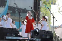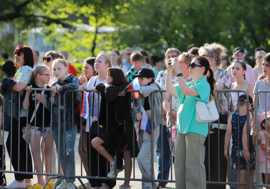 Несмотря на жару на Петровском бульваре к началу праздничной концертной программы собрались сотни людей.