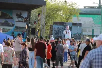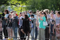 Те, кто пришел пораньше, успели занять места на трибунах, укрывшись от солнца. Другие предпочли разместиться в тени деревьев, на газонах. Некоторые даже устроили импровизированный пикник с прохладительными напитками и купленной кукурузой и сахарной ватой.