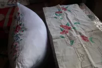 – Тогда же после войны ничего не было: пяльцы самодельные из дерева, простынь возьмешь, вот и белый материал. Нарисует муж мне на ней что-то, я вышью. И койку можно заправить, – с теплом вспоминает пожилая женщина. – Всем трем дочерям и крестиком, и гладью расшивала наволочки, подушки, сумочки-авоськи.