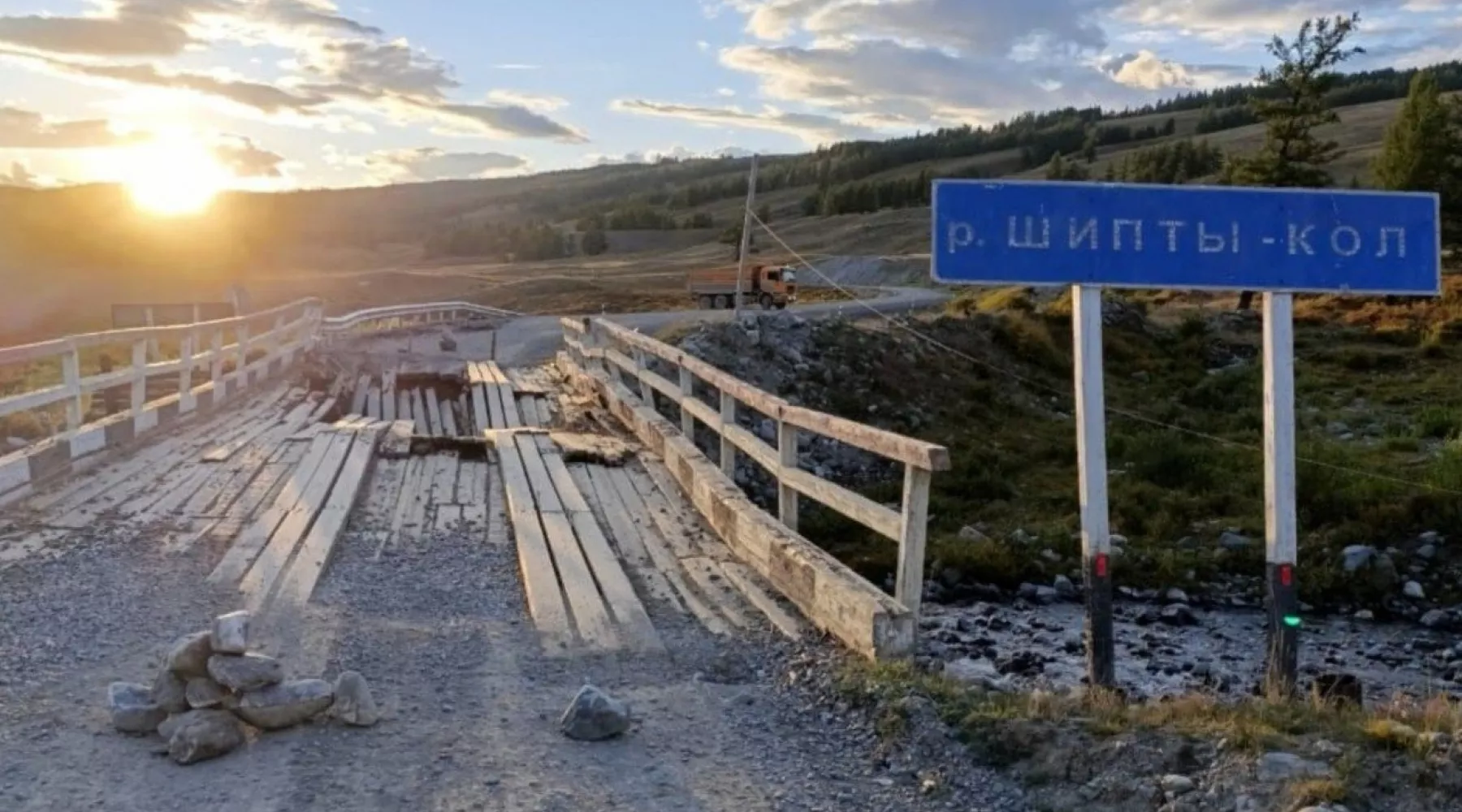 На участке км 96+672 автодороги регионального значения Кош-Агач – Беляши в Республике Алтай разрушился мост через реку Шипты-Кол, пишет "Толк" со ссылкой на Горно-Алтайавтодор.