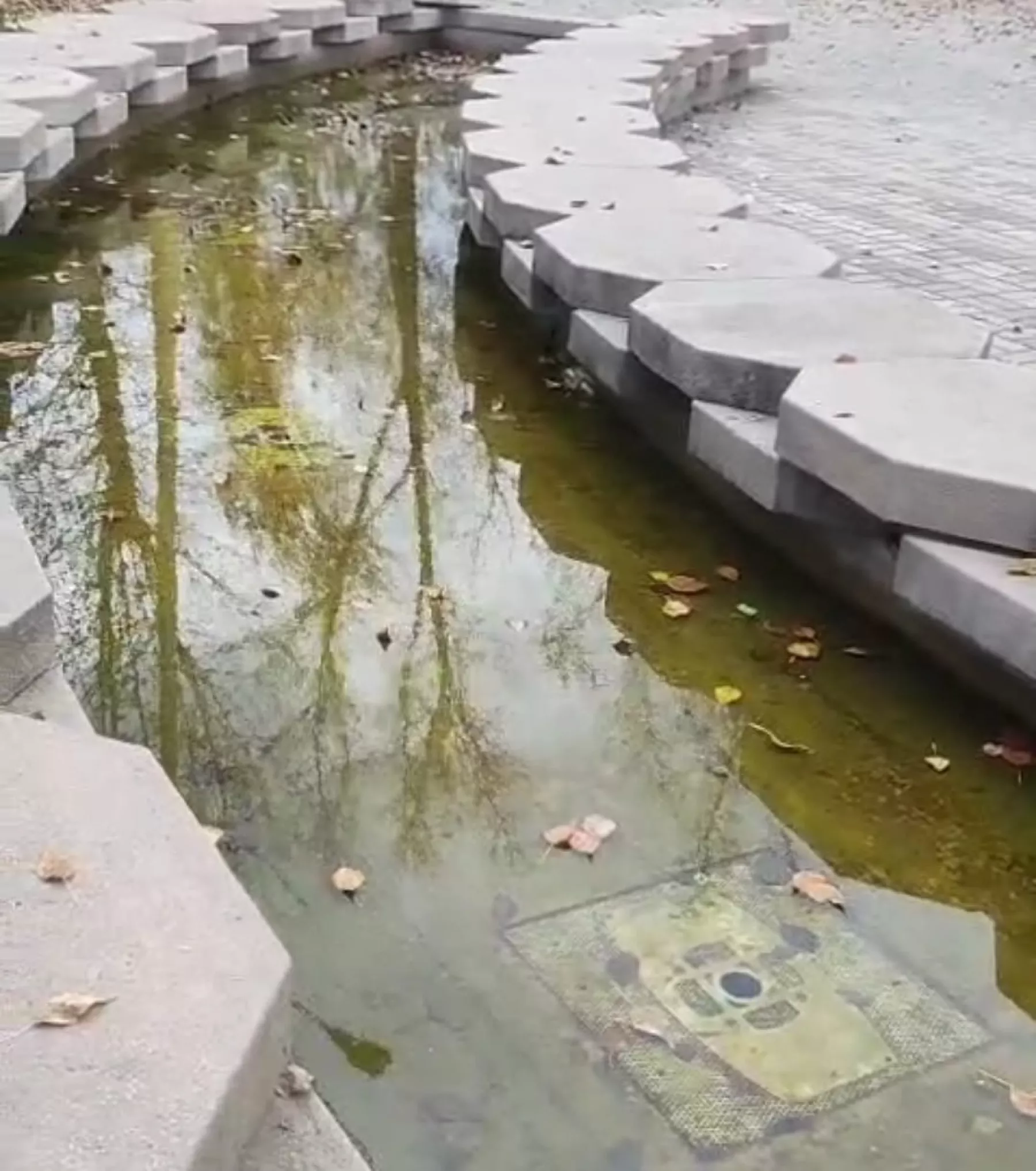 - Этот фонтан сухого вида: вода бьет из форсунок и тут же отводится обратно. Поэтому верхняя чаша всегда пустая. Но в ней находится клапан для слива воды, который забило листьями. Из-за этого чаши заполнились. Как только это произошло, мы оперативно слили воду и прочистили фонтан. Но это ненадолго. Пока падают листья, чаши так и будут заполняться, - поделился подрядчик.