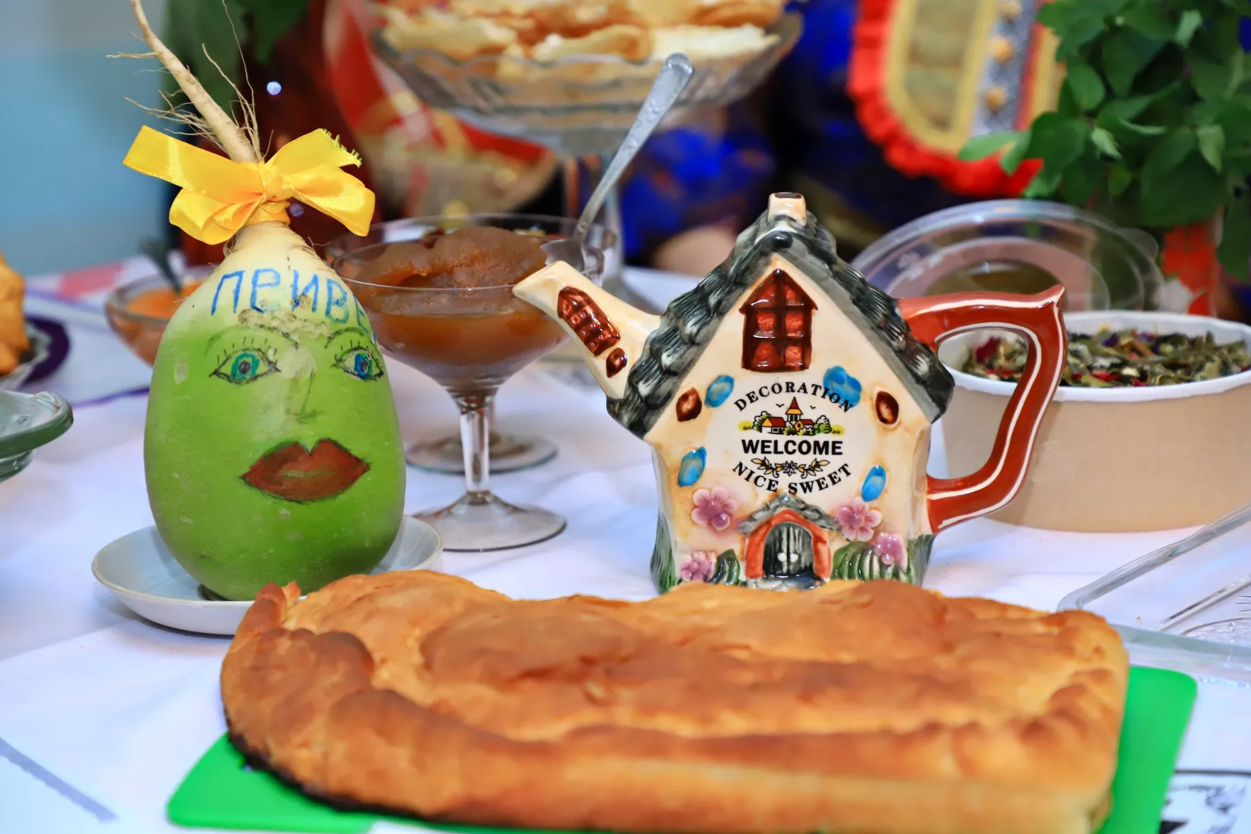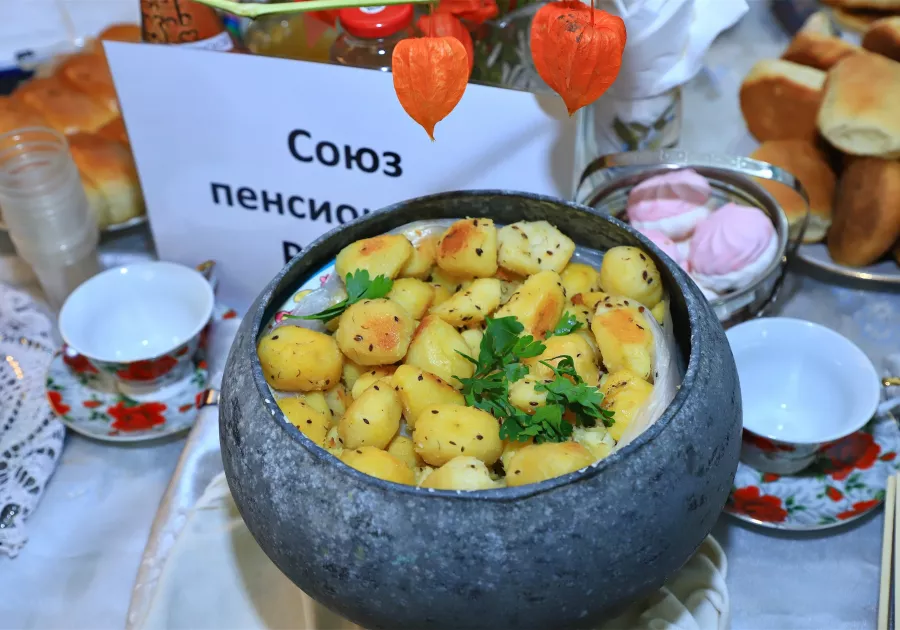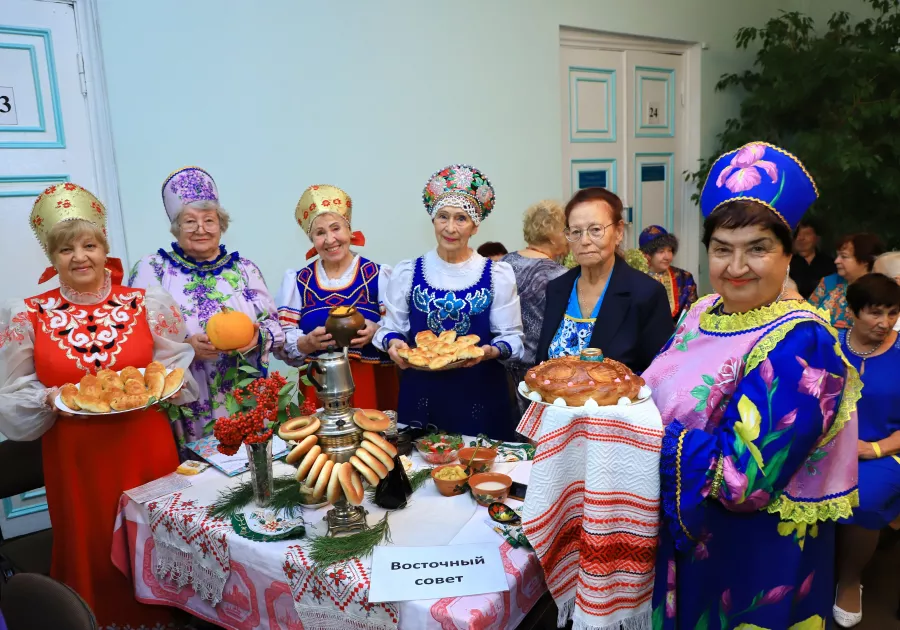 – У нас все очень активные, всегда откликаются и готовят с душой, – рассказывает Валентина Зыкова, председатель Восточного совета ветеранов.– В этот раз мы рассказали об обычаях и традициях русского народа. Долго обсуждали, что приготовить и чем удивить. Наша Тамара Федоровна испекла русский каравай, я сделала пшенную кашу с тыквой. Каждый приложил руку: вот овсяный кисель, по старинному русскому рецепту. Ну и немного горячительного – своя вишневая настойка. А смотрите, какую репу вырастили – она украшает стол.