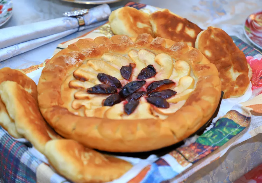 – "Ку" – лебедь, "ман" – я, кумандинцы – люди-лебеди. У нас костюмы соответствуют и блюда – тоже, – демонстрирует яркий наряд Валентина Кузикова, председатель совета ветеранов педагогического труда. – В Бийске проживает около 1400 кумандинцев. Раньше они предпочитали только растительную пищу, поэтому на столе у нас соленый арбуз, вареники с творогом, шангэ, лапша с мясом.
