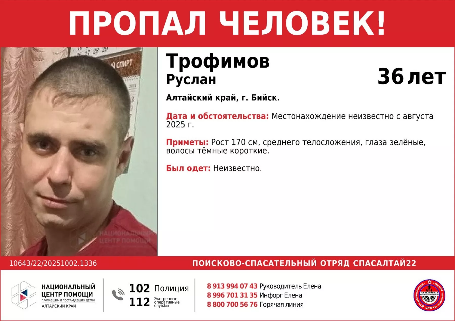 В Бийске разыскивают 36-летнего мужчину, пропавшего еще летом