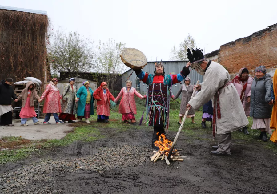 – Шаманом я стал лет 15-20 назад, когда началось возрождение нашего народа, примерно с 1989 года, – делится Владимир Сарочаков. – Одни шаманы лечат, другие ищут что-то украденное, третьи – предсказывают будущее, иные на погоду влияют, как я. Обычно всегда солнышко во время обряда, но в этот раз впервые снег пошел.