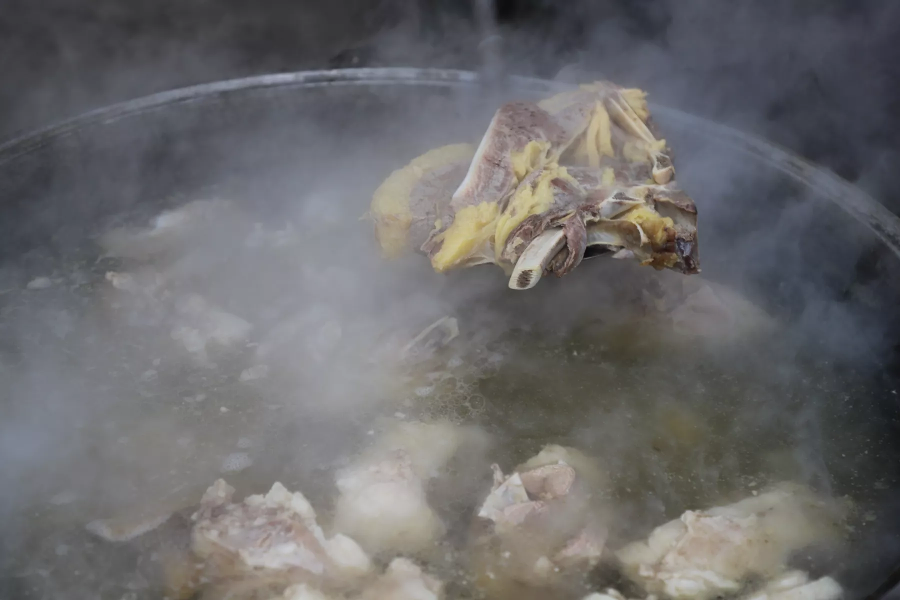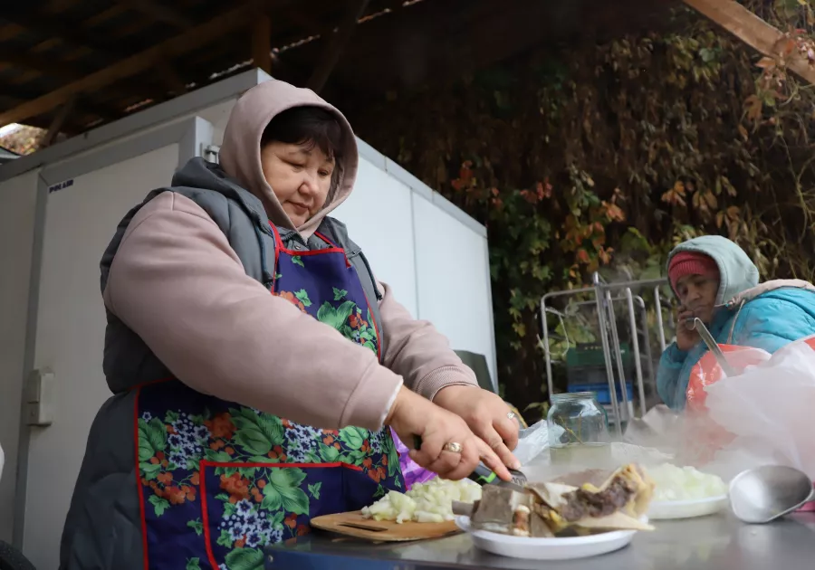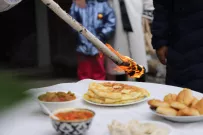 – Сегодня мы приготовили тутпаш с тремя видами мяса: говядина, баранина и сарлык – это як из Кош-Агача. Наши братья-теленгиты передали. В конце тесто квадратиками добавляется. В другом котле – чистая баранина. Женщины приготовили кан, кровяную колбаску. Еще можно попробовать косичку, плетеную из внутренностей барашка, – красочно описывает он яства.