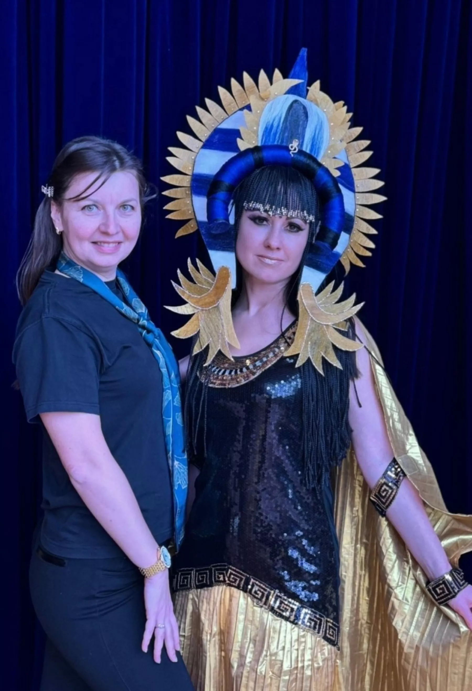 Так, бийчанка уже выступала на Чемпионатах с египетским кокошником, волосами-змеями.