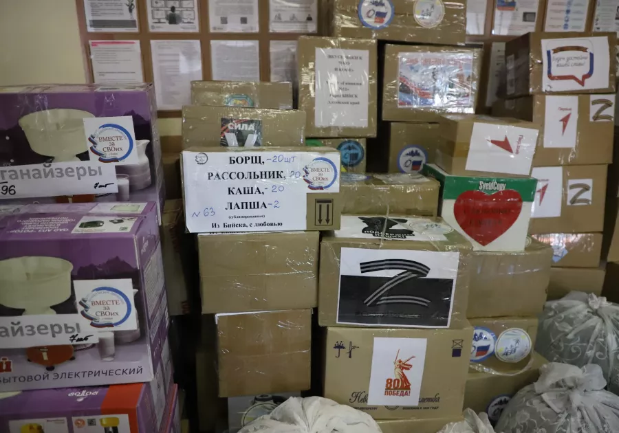 Женщина уже по опыту предыдущих сборов знает, что все, что отправляется отсюда, собрано по заявкам ребят и действительно им необходимо, особенно на передовой линии. Посылки формируются буквально всем миром – привлекается широкий круг населения Бийска. Большой, постоянный вклад вносят ветеранские организации, педагогические коллективы системы образования, депутатский корпус, предприятия, предприниматели и просто неравнодушные бийчане.