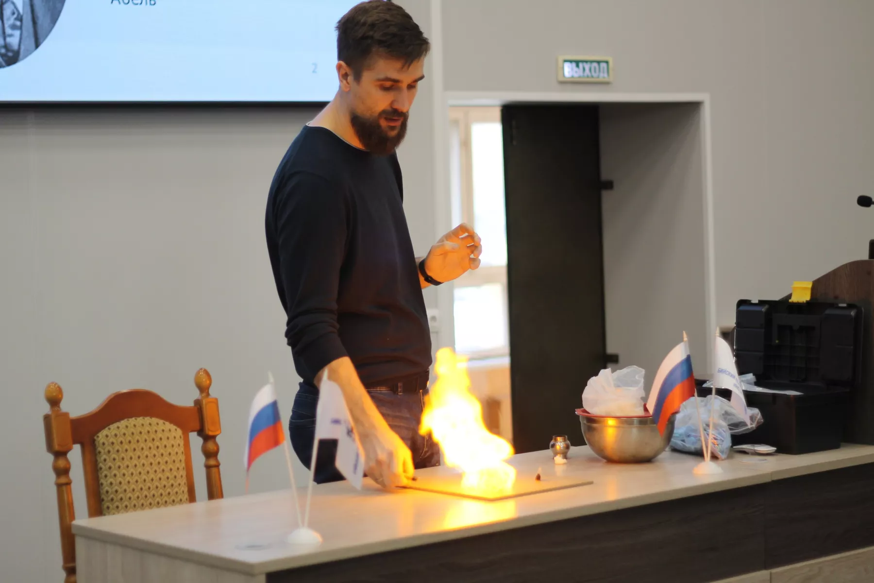 Первым делом на фестивале школьников познакомили с веществами и их свойствами. На станции, где проводили химические опыты, ребята узнали, зачем нужна целлюлоза и как ее используют в повседневной жизни. Также школьники своими глазами увидели, что происходит с разными материалами под воздействием азота.