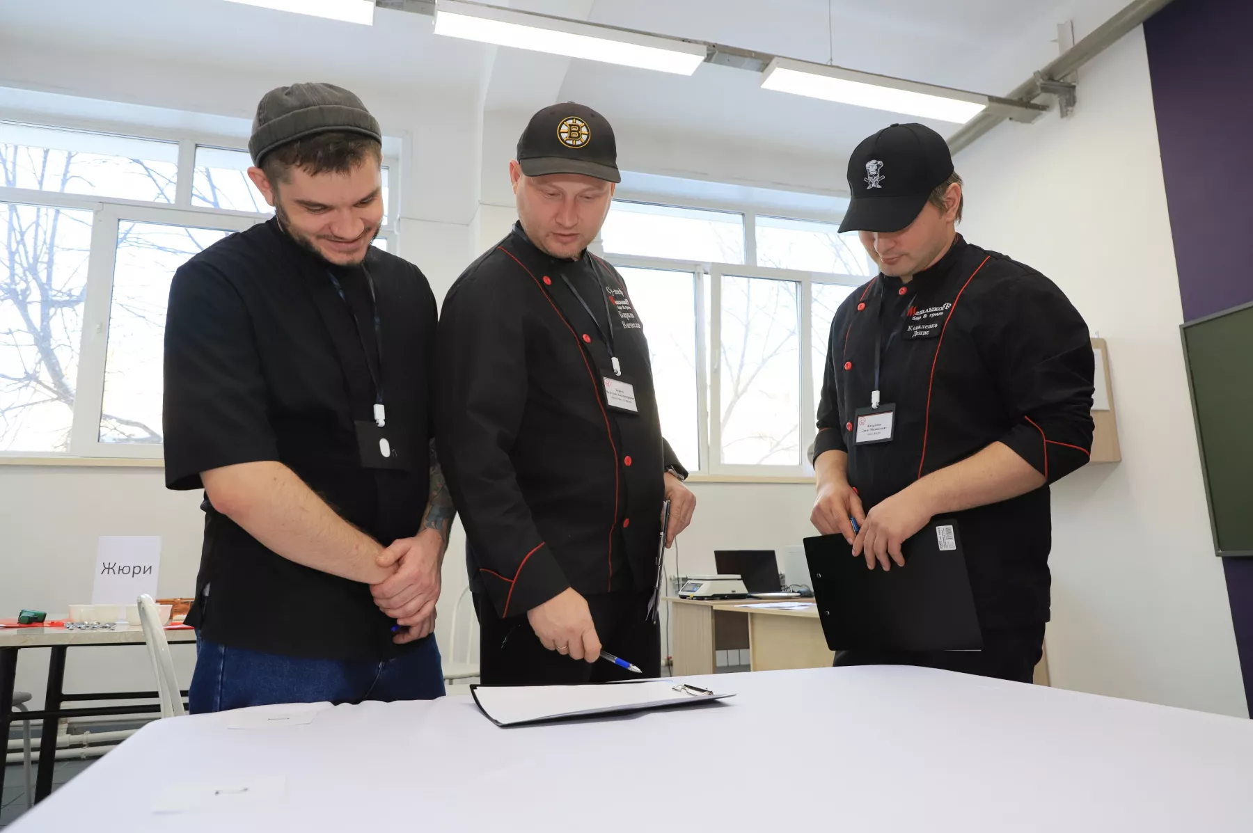 Заходить в рабочую зону и отвлекать поваров категорически нельзя. Поэтому члены жюри следили за действиями участников издалека: оценивали чистоплотность конкурсантов и то, как они соблюдают технику безопасности.