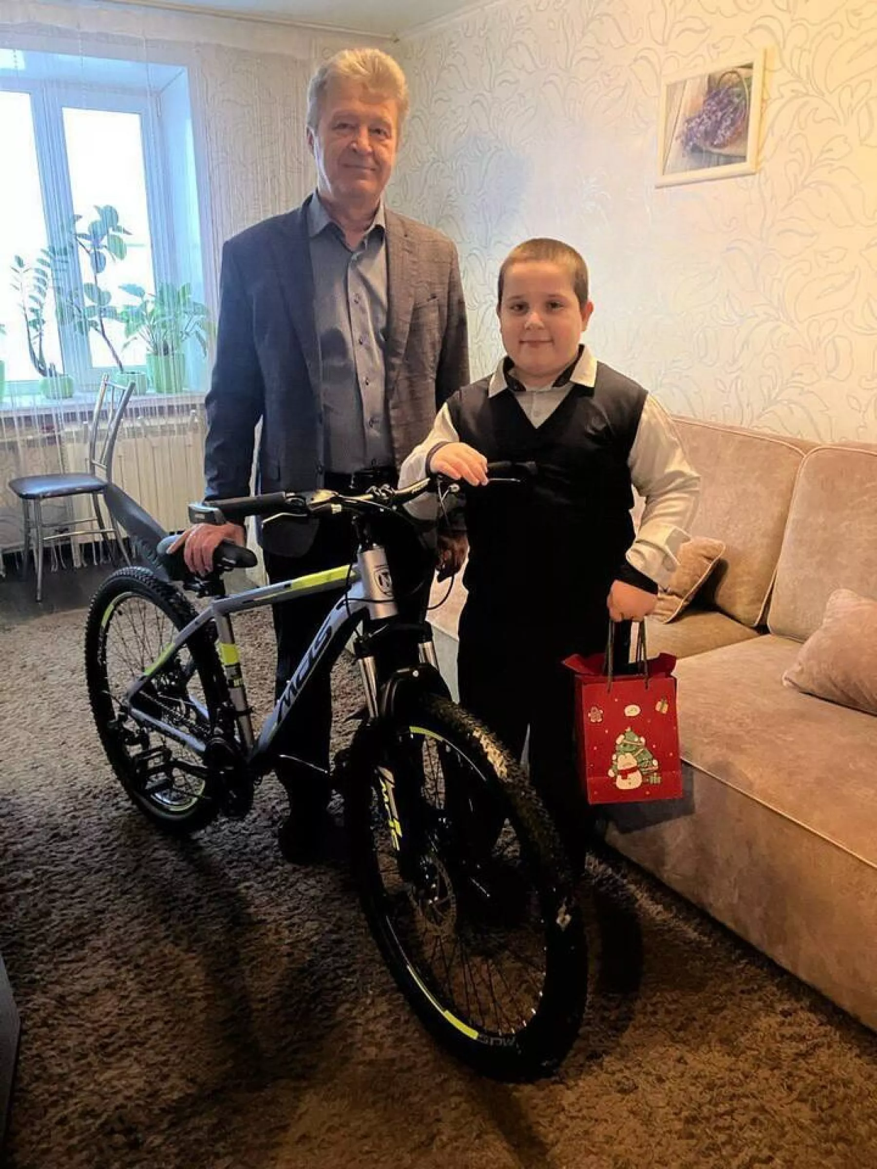 Мальчик давно мечтал о велосипеде. Министр лично поздравил семью ребенка с наступающим праздником и вручил Максиму долгожданный подарок.
