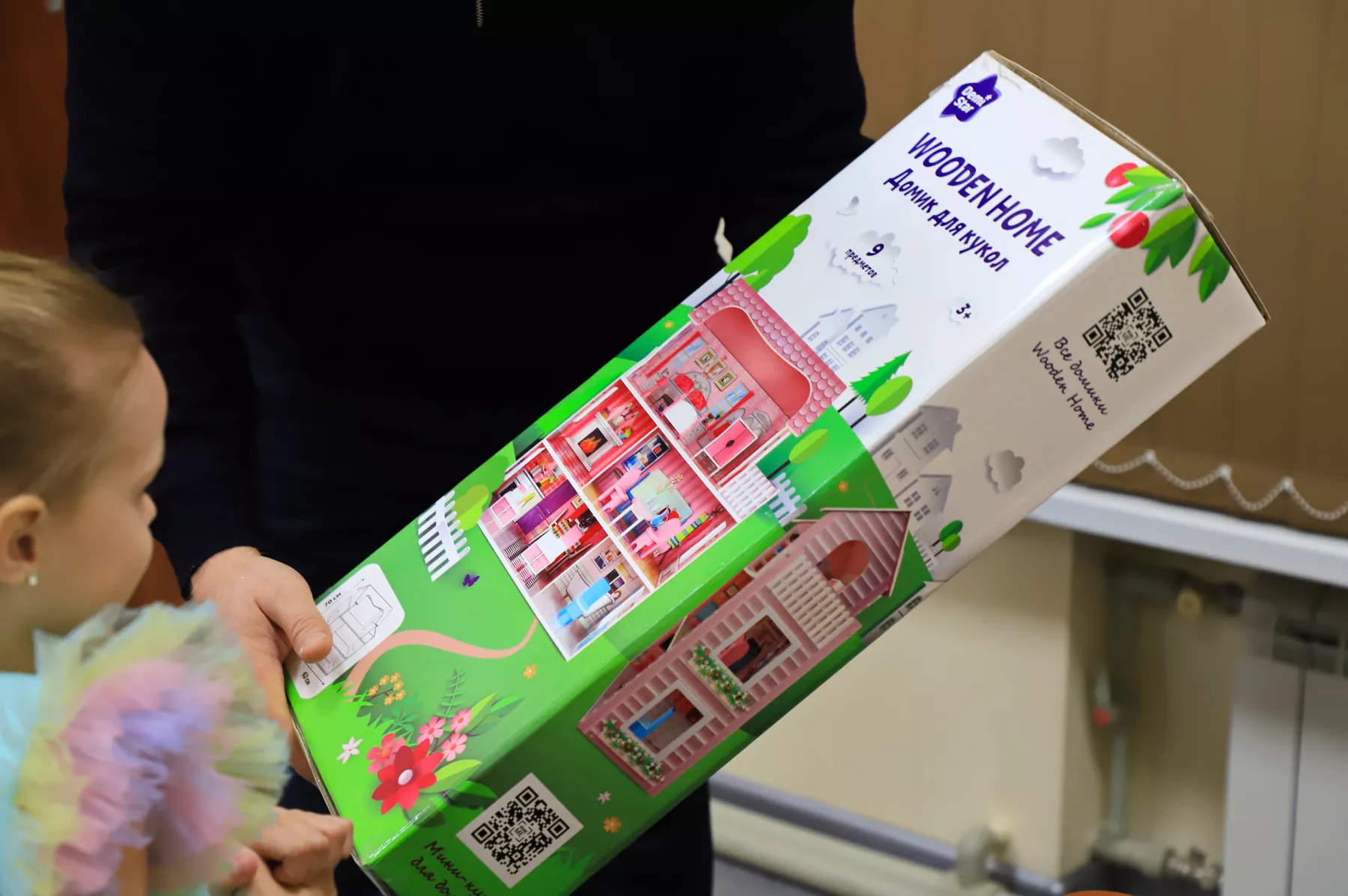 Ребята получили большие сладкие подарки, а Вика – настоящий особняк для кукол, да еще и с мебелью!