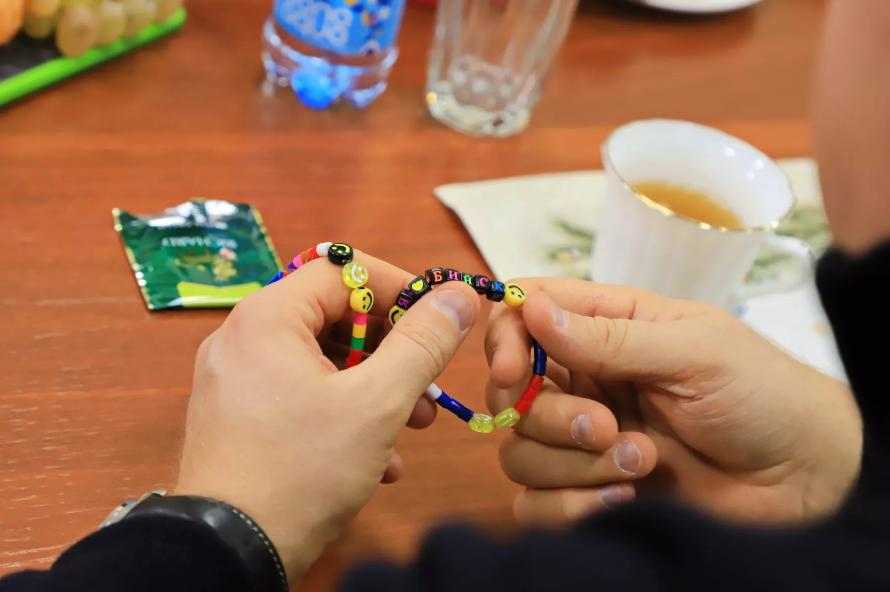 С Андреем Александровичем они сразу нашли много общих тем для разговора: обсудили компьютерные игры, учебу и даже рыбалку. Летом вся семья мальчика на Бии успешно ловит карасей, окуня и даже щуку. Михаил также рассказал, что раньше занимался кикбоксингом в «Гренаде», потом был перерыв по состоянию здоровья, и сейчас мальчик готов вернуться в любимую спортивную секцию. Кстати, у него есть еще одно необычное увлечение, Миша плетет фенечки: яркие, красивые и со смыслом. Иногда дарит их одноклассникам, иногда делает для себя или радует девчонок.