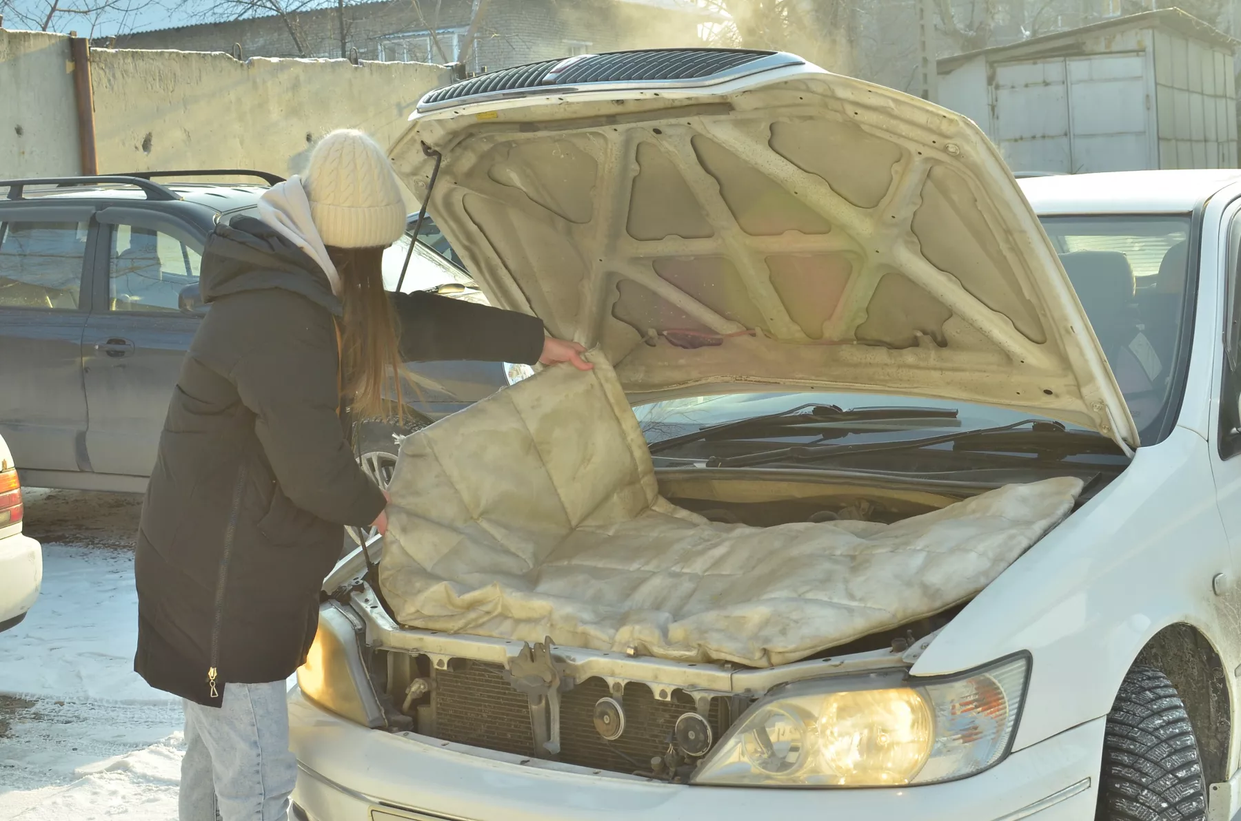 Зачастую в морозы водители применяют народные методы, чтобы спасти свой транспорт – потеплее укутывают мотор. Для этого одни используют обычные ватные или войлочные одеяла, другие же – специальные для двигателя.