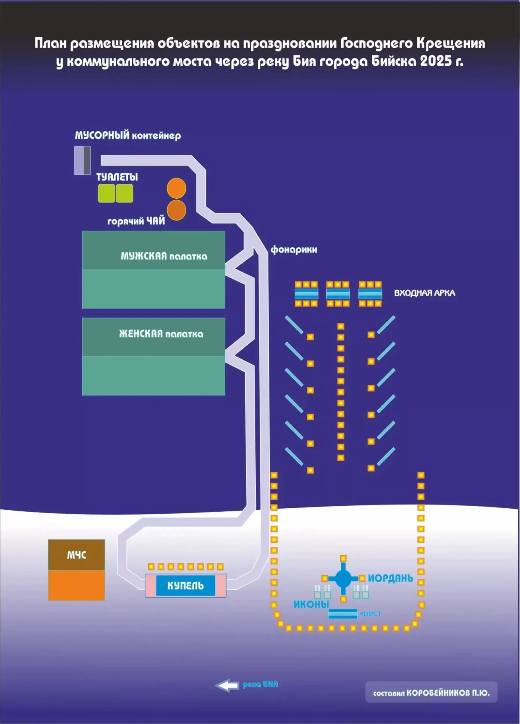 Чтобы празднование Крещения Господня прошло комфортно, на берегу Бии разместят палатки, где можно переодеться. Кроме того, после окунания все желающие смогут согреться, выпив горячего чая.