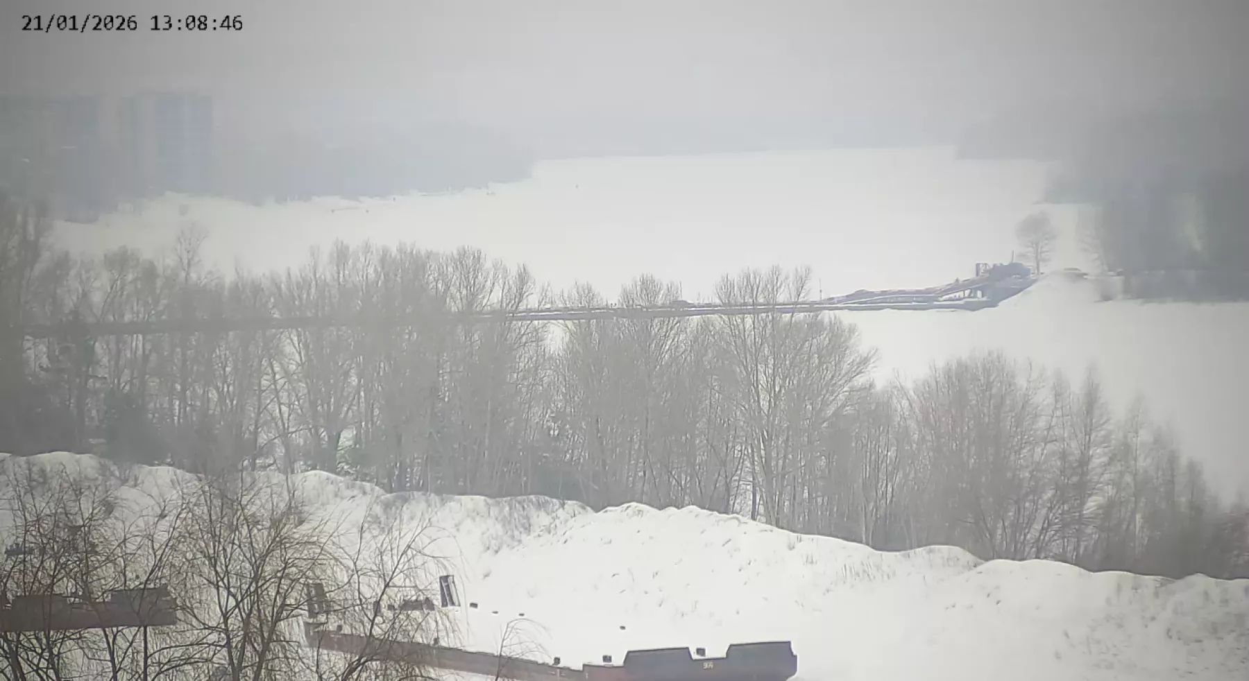 Но на кадрах с камер видеонаблюдения видно, что сейчас на понтонном мосту нет большой пробки.