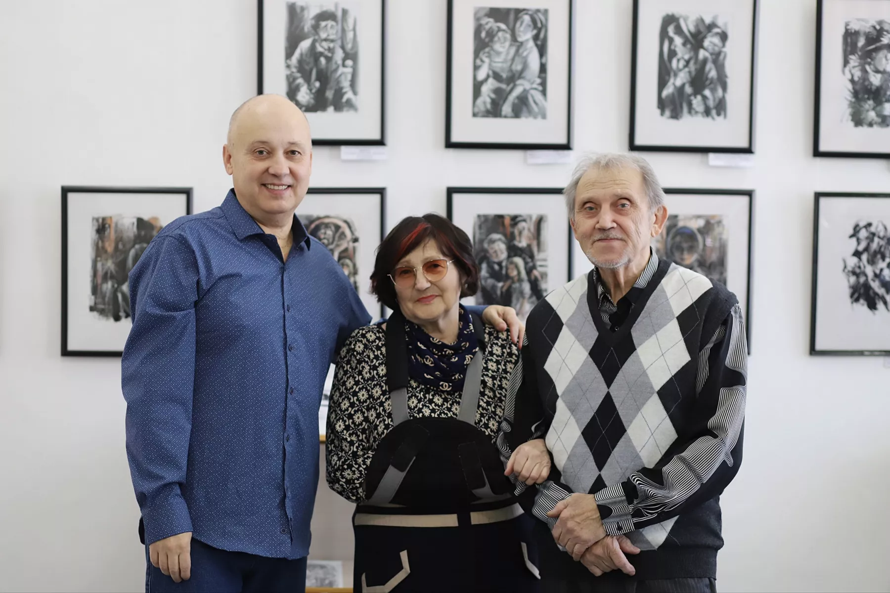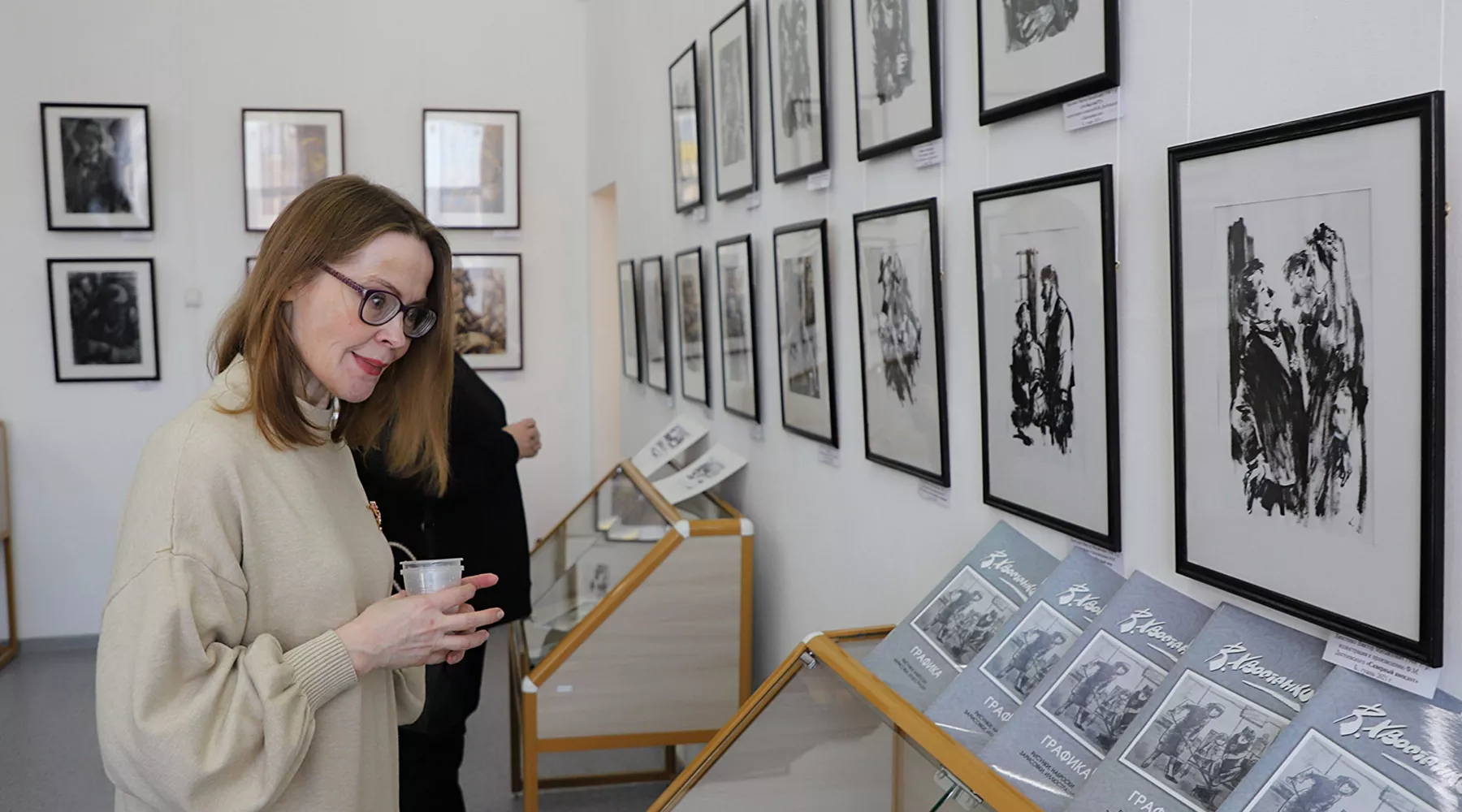 Красок в казалось бы монохромных работах Виктора Михайловича достаточно. Прежде всего, это невиданная палитра человеческих эмоций: страх, восторг, разочарование, тихая надежда… Вот уверенный в своем обаянии Пралинский, а рядом – смутившийся жених и совсем обескураженная гостем невеста из «Скверного анекдота» Достоевского. На другой стене – персонажи рассказов Ивана Семоненкова – простые, но искренние. Да и черно-белая гамма вдруг оказывается, например, дымчато-голубой, как «Дядюшкин сон».