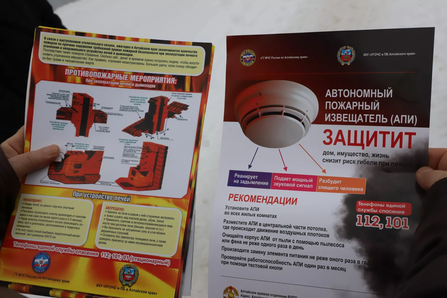 - В рамках мероприятия посещаем частные дома. Сегодня работаем по ул. Проезд по Цесовской. По плану нужно обойти шесть домов, возможно чуть больше. Владельцам мы раздаем агитационные материалы в виде брошюр. На памятках указаны правила, где четко прописано, что можно, а чего категорически нельзя делать при эксплуатации печей. Со стороны кажется, что здесь и так все понятно, нет ничего сложного. К сожалению, как показывает практика, люди часто допускают ошибки. Мы активно работаем, чтобы уменьшить количество пожаров из-за печей в городе, - рассказал Артем Лобода, начальник караула 21-й пожарно-спасательной части Бийска.
