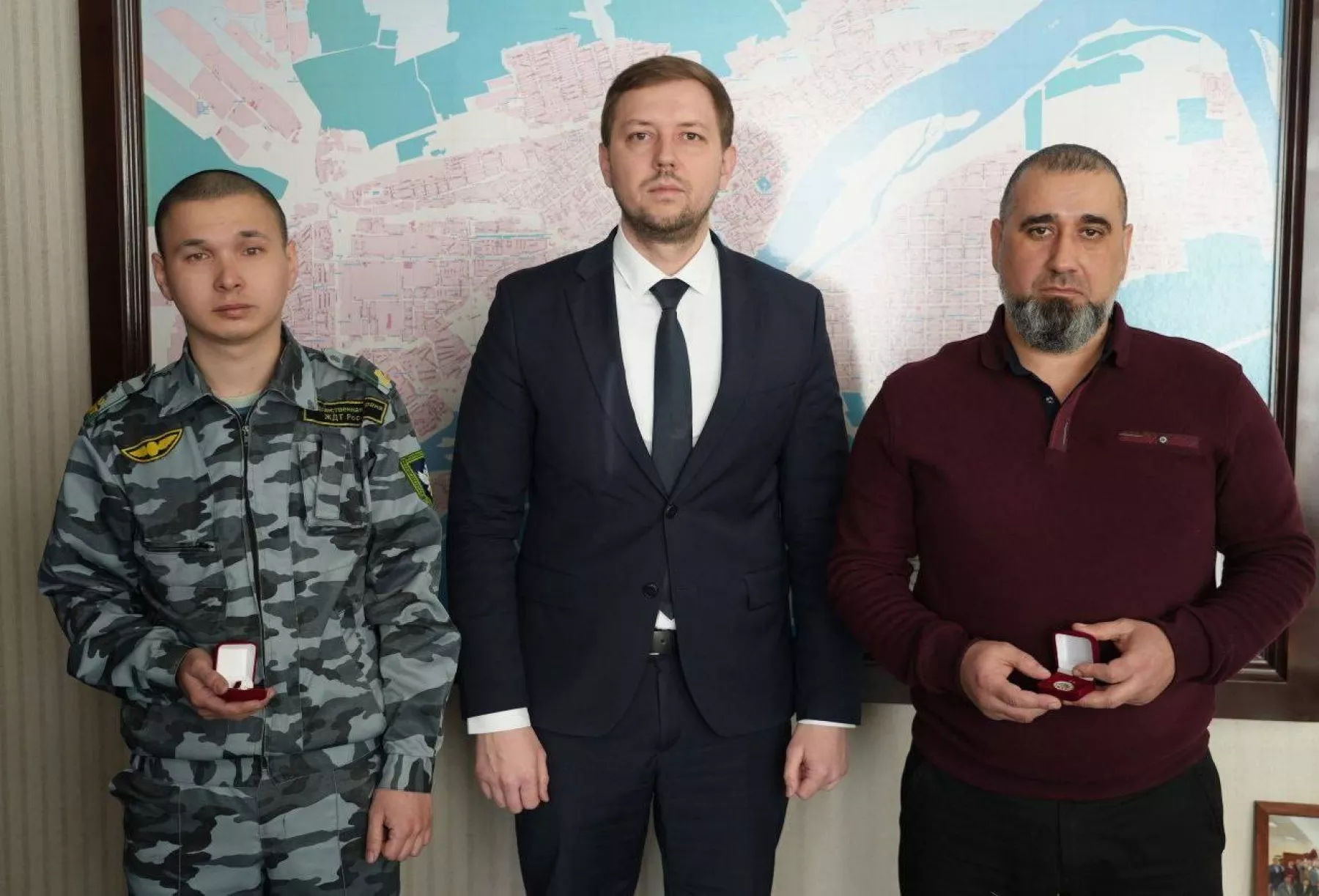 «Вручил наградной знак «С признанием и благодарностью, Бийск» железнодорожникам – составителю поездов станции Руслану Мамедову и стрелку Барнаульского отряда ведомственной охраны Михаилу Трунову за бдительность и помощь в задержании женщины, пытавшейся поджечь релейный шкаф (жд-оборудование, обеспечивающее регулирование и безопасность движения поездов)», – написал мэр.
