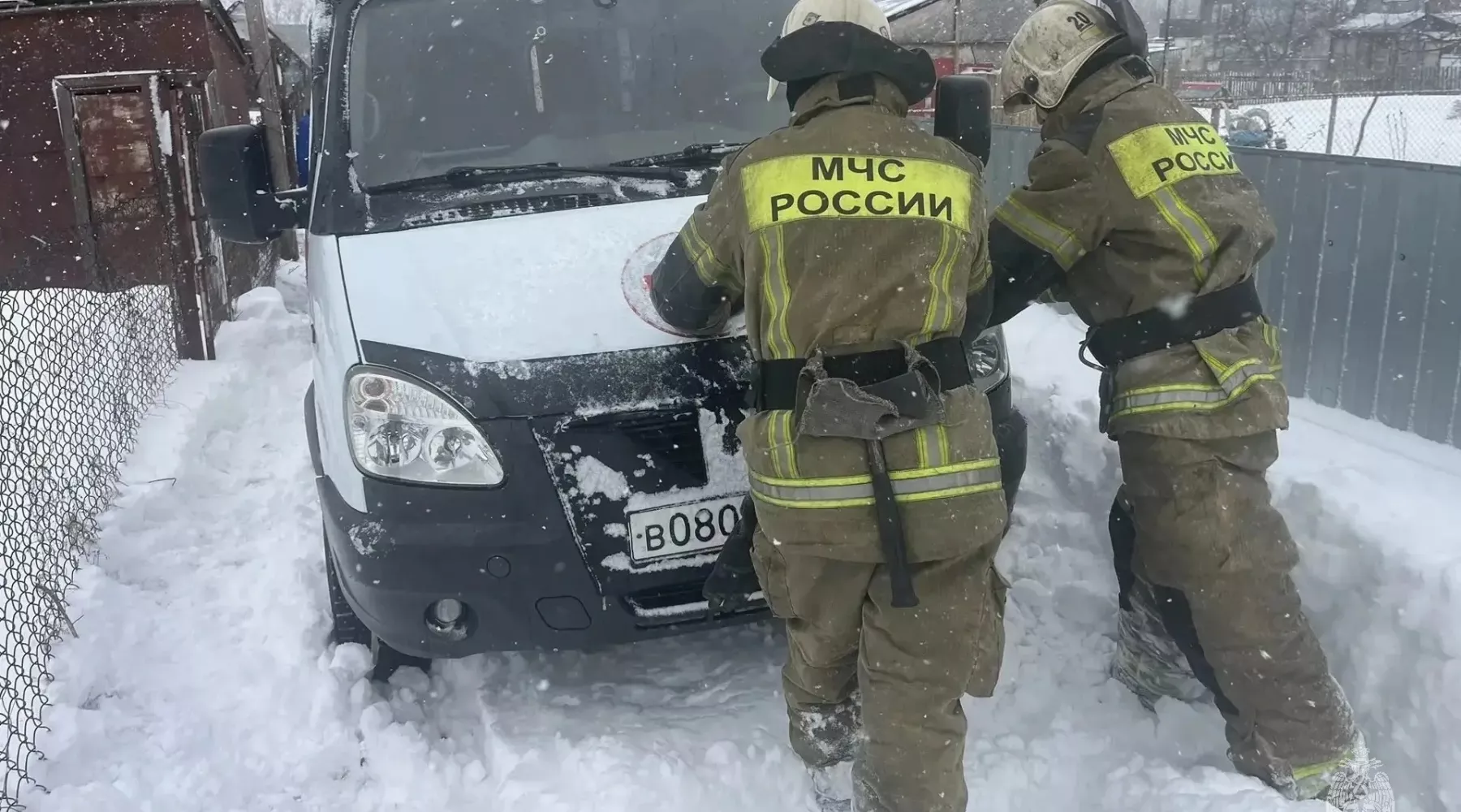 На место прибыли сотрудники 20 пожарно-спасательной части 2 пожарно-спасательного отряда. Пожарные откопали колеса автомобиля и помогли медикам продолжить путь.
