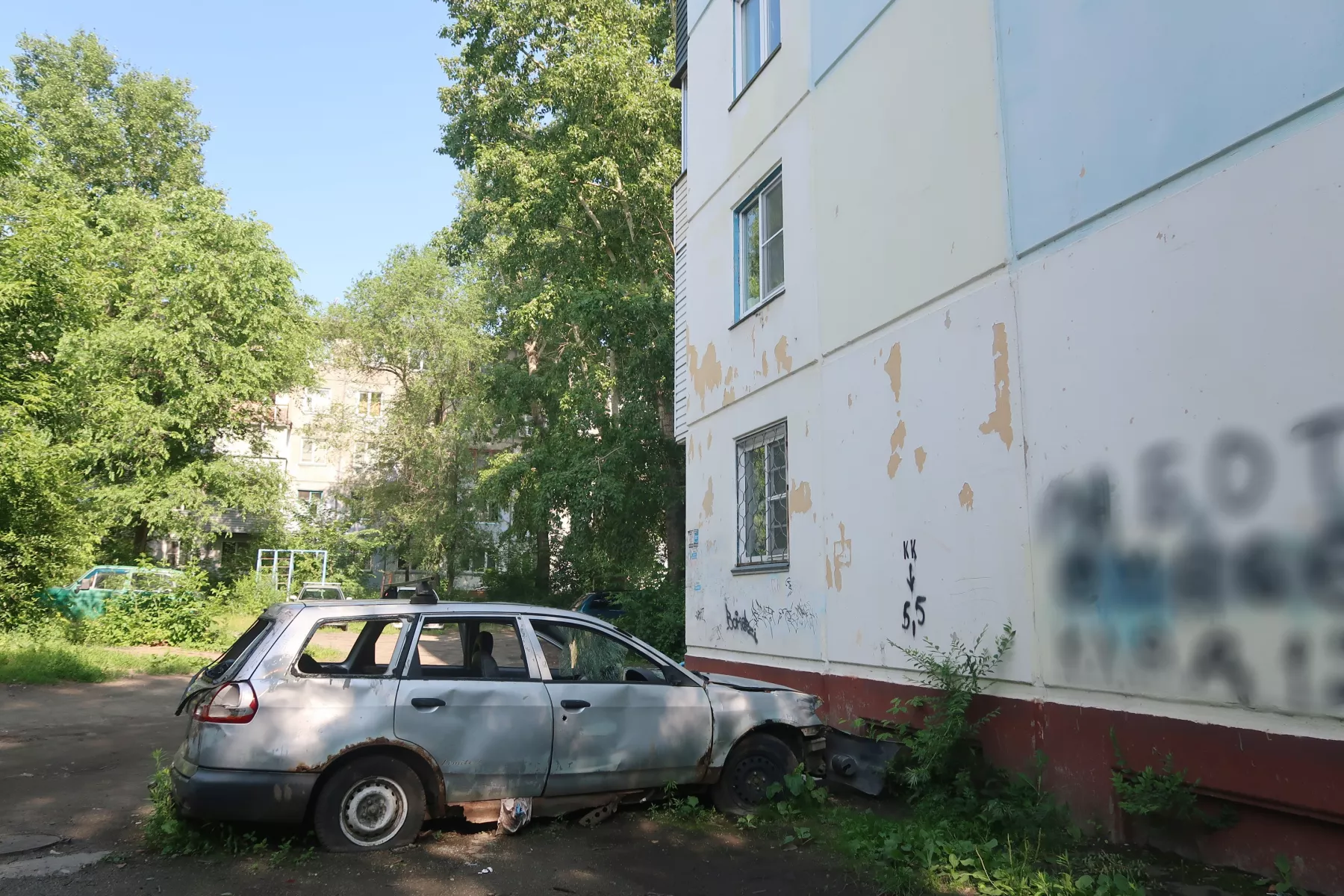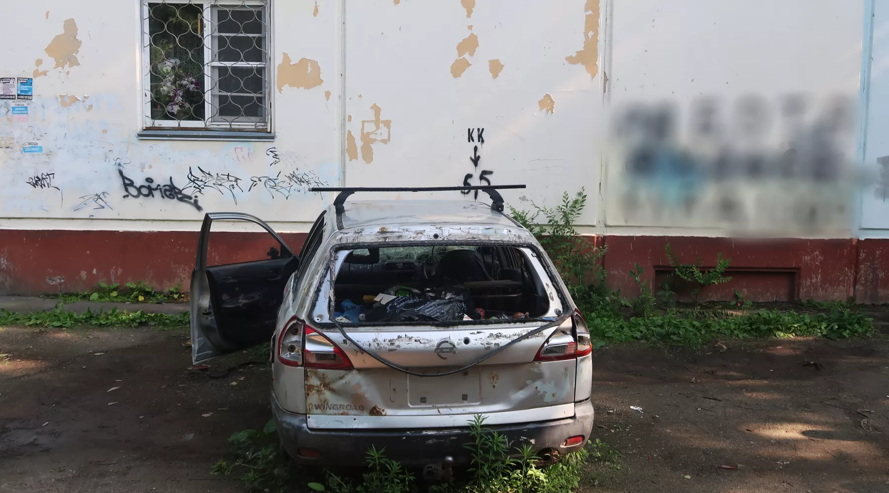 Жители многоквартирного дома на ул. Радищева, 6 в течение почти четырех лет пытаются избавиться от старого автомобиля "Ниссан Вингроуд", который кто-то оставил впритык к стене и бросил. Государственный номер транспортного средства неизвестен, а хозяин не найден.
