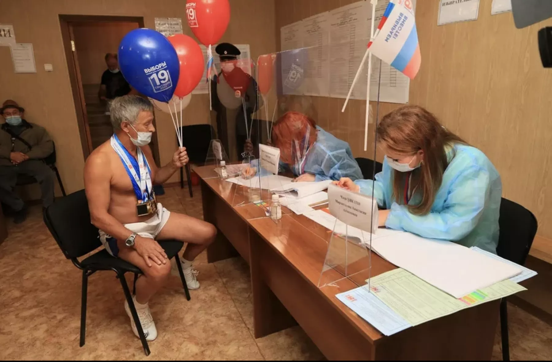 На выборах мужчина тоже отличился. Он посетил избирательный участок в посёлке Лесном, под Барнаулом. Отдать свой голос Зеленецкий пришёл в одних шортах, как настоящий «морж», и с медалями на груди.