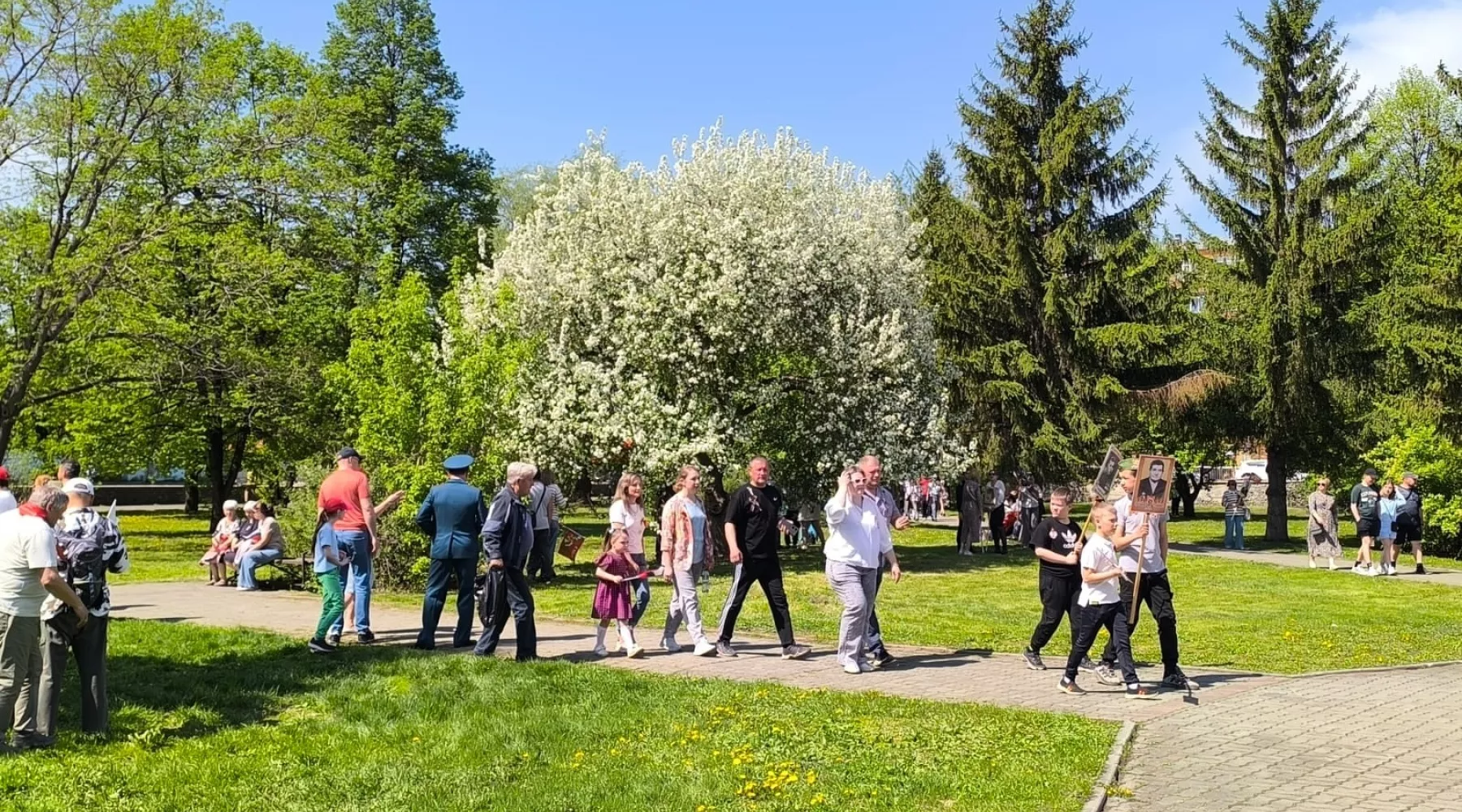 В Бийске шествие "Бессмертного полка" начнется в 13 часов. Точкой сбора колонны в этом году стал парк Гаркавого. Уже к 11.30 сюда стали стекаться десятки людей. Учитывая, что температура воздуха приближается к 30 градусам, многие пока прячутся в тени.
